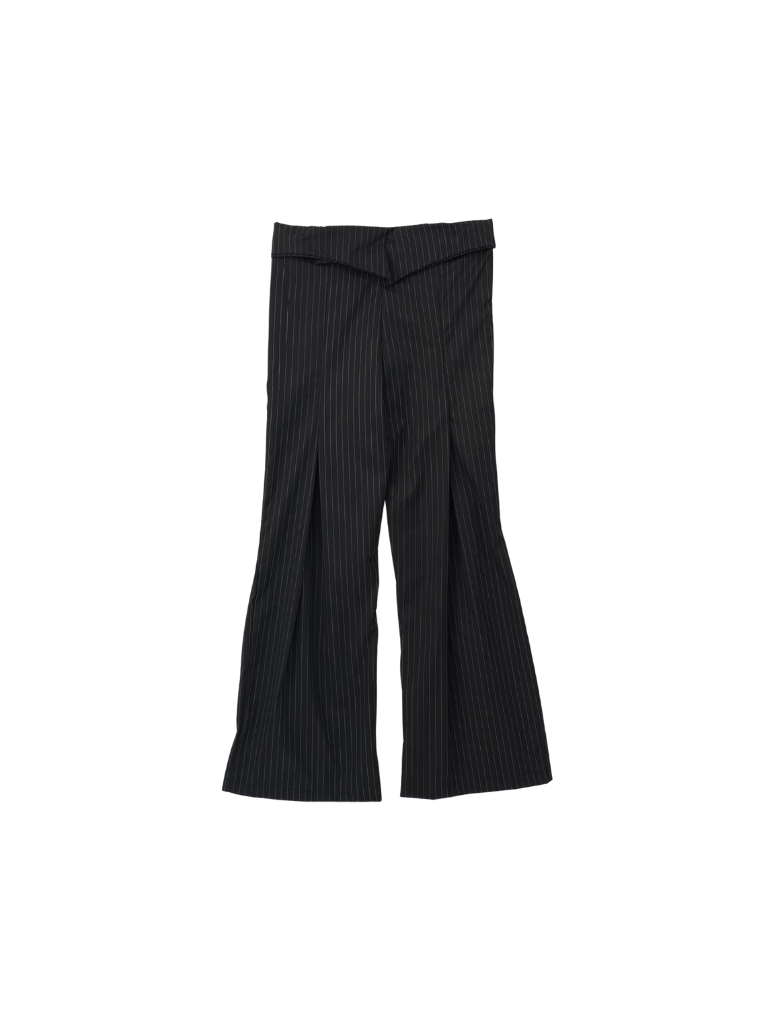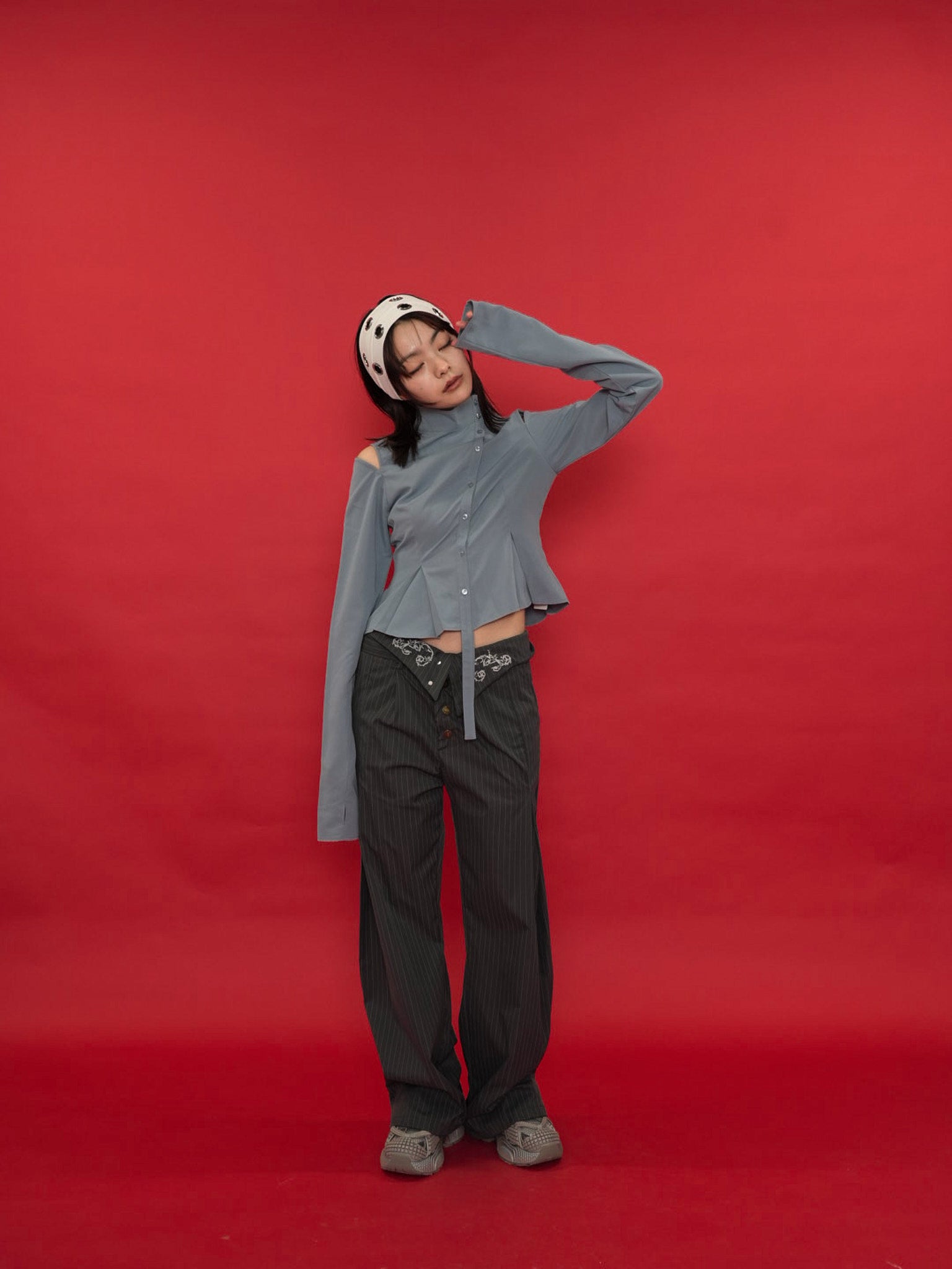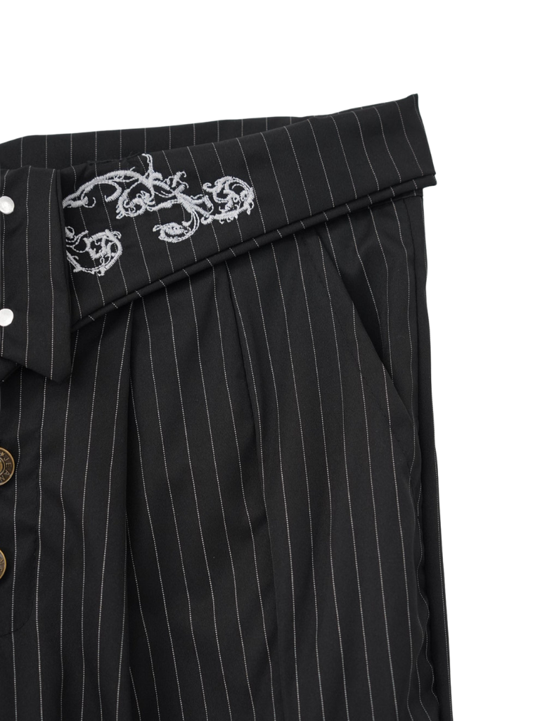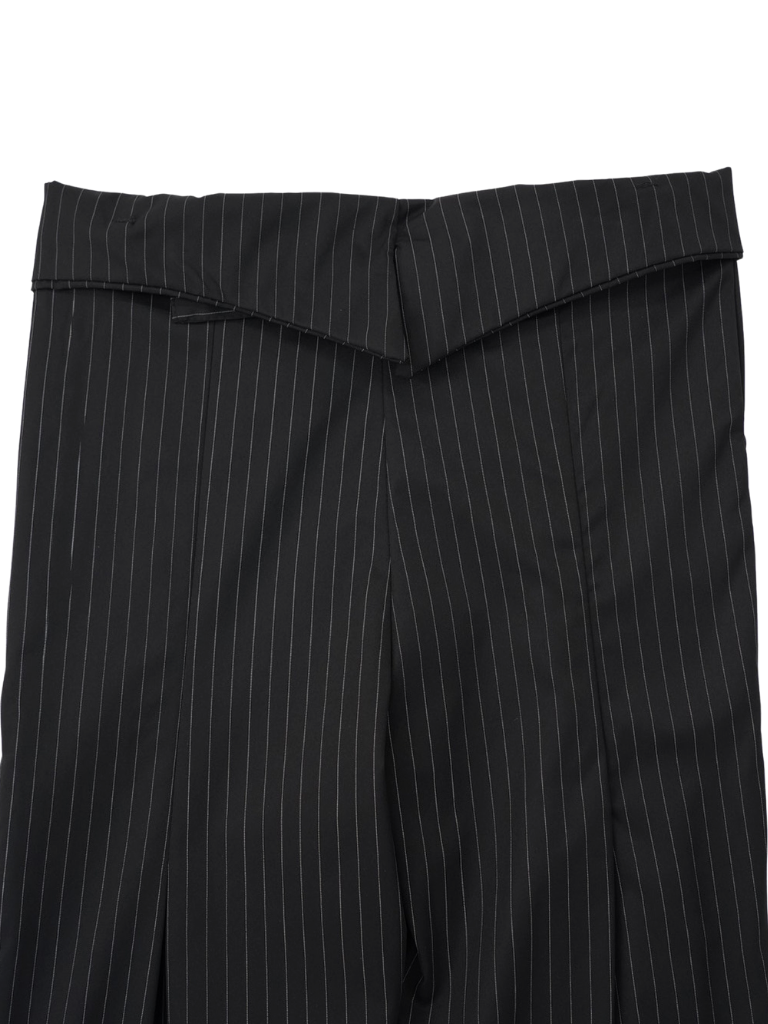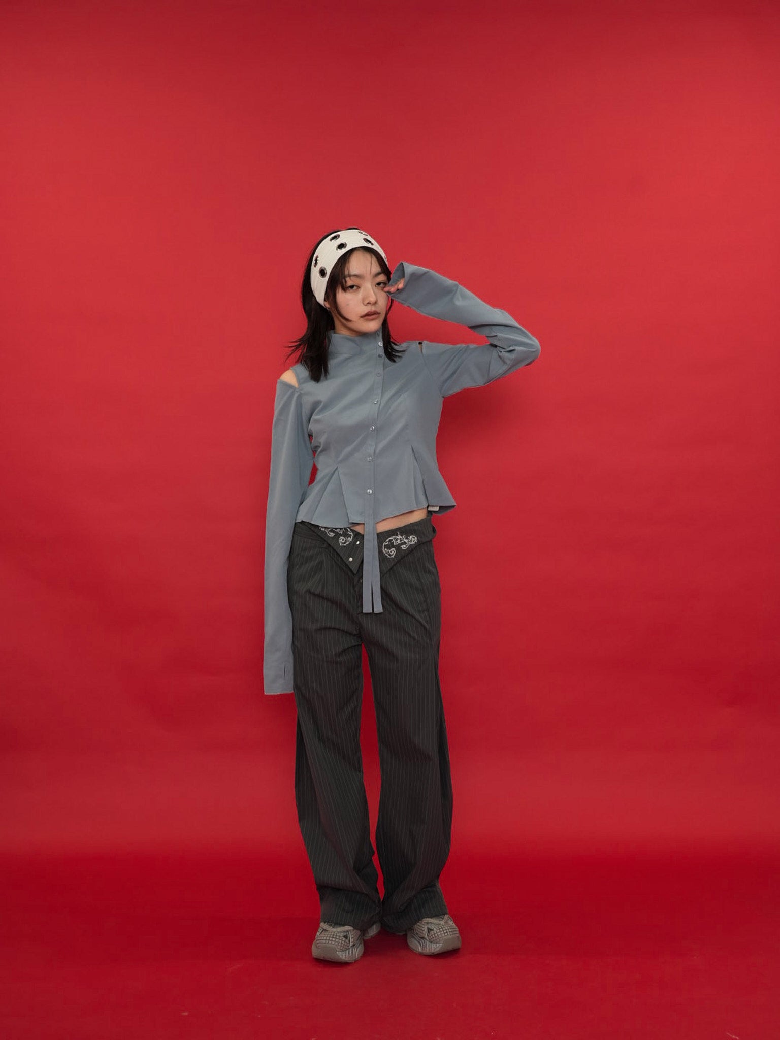ボタンディテールが印象的なワイドシルエットパンツ。ウエストの留め方で表情が変わる2way仕様で、ハイウエストにもローライズにも着用可能。落ち感のある素材が動きを美しく見せ、スタイリングに程よい緊張感を与える一本。