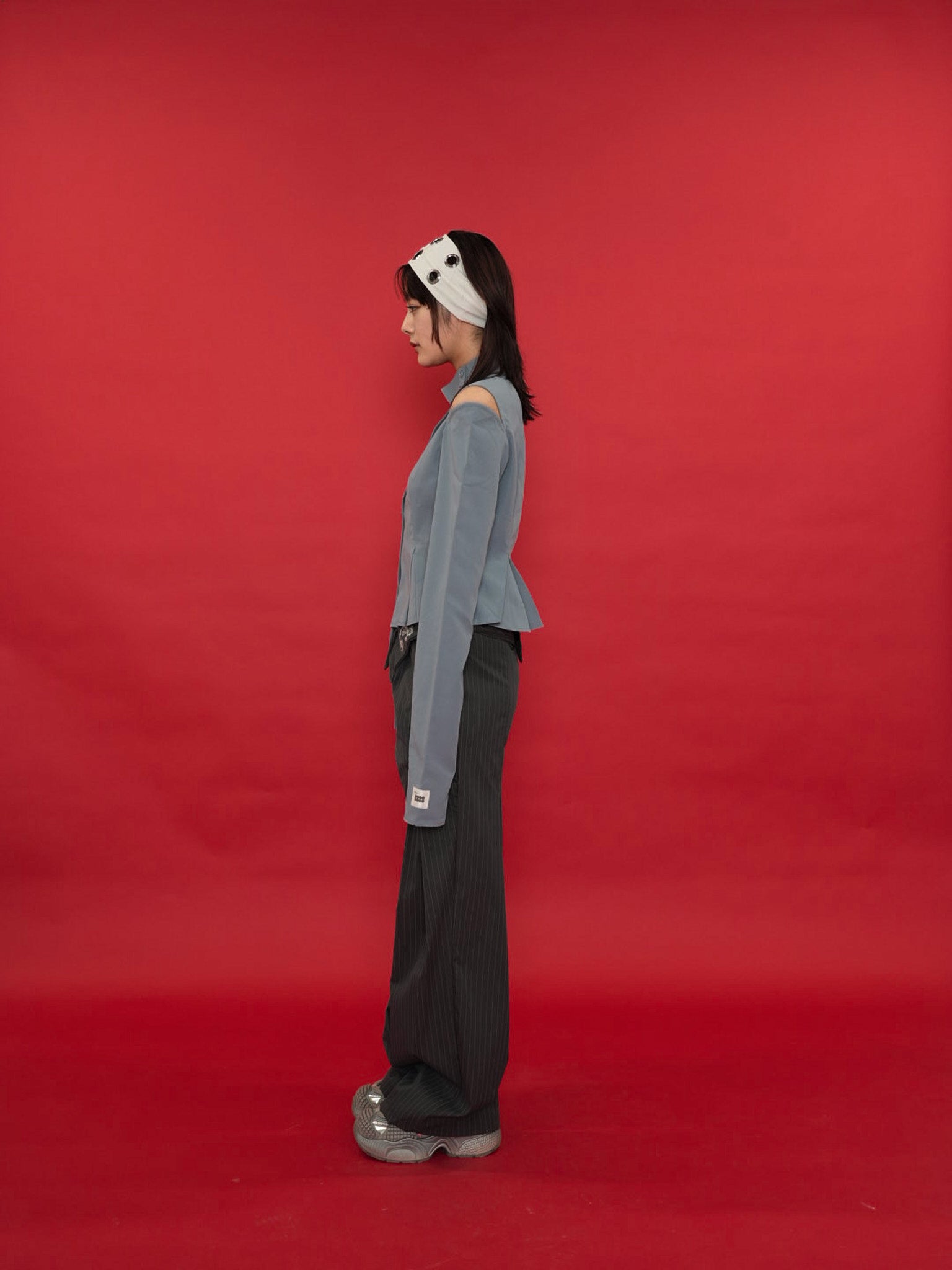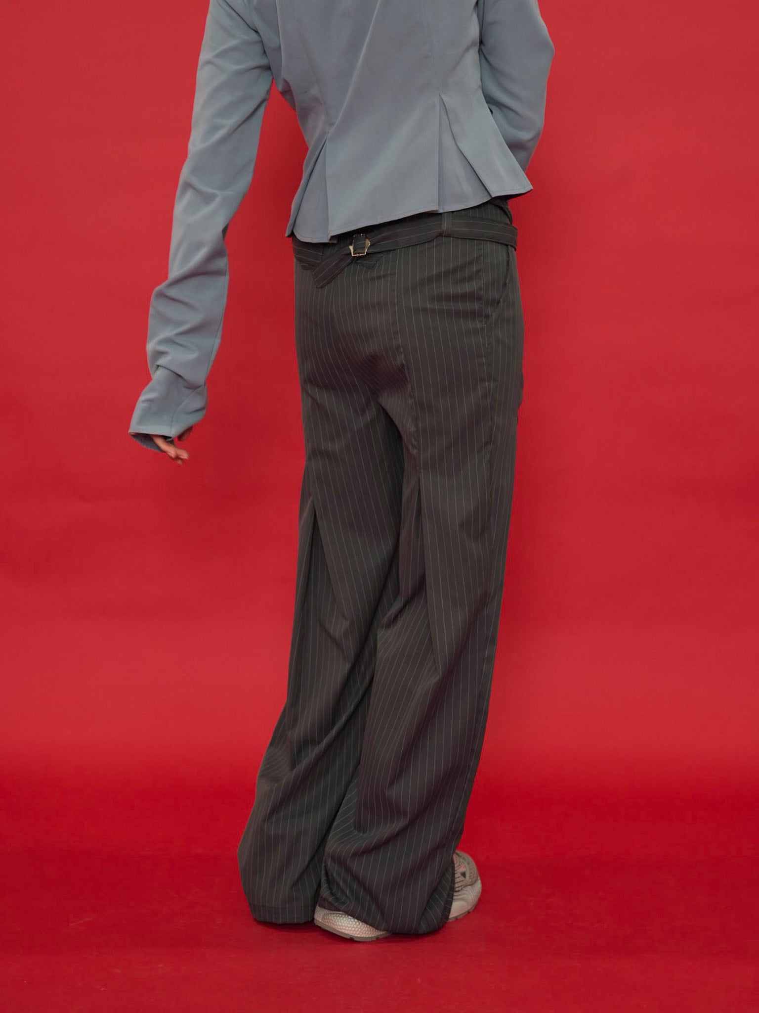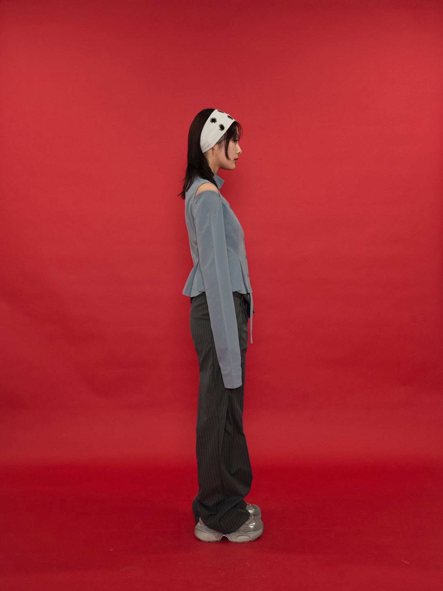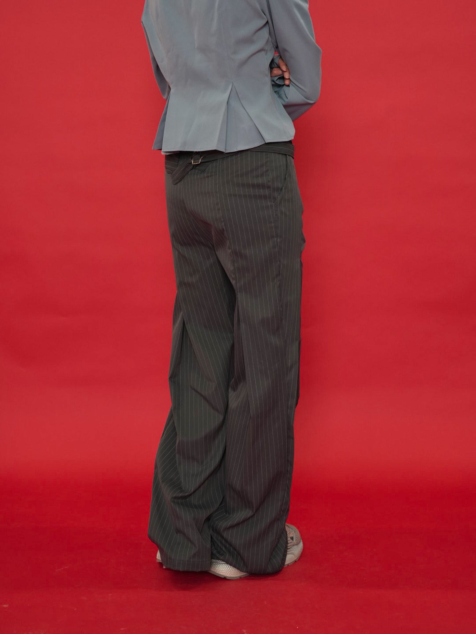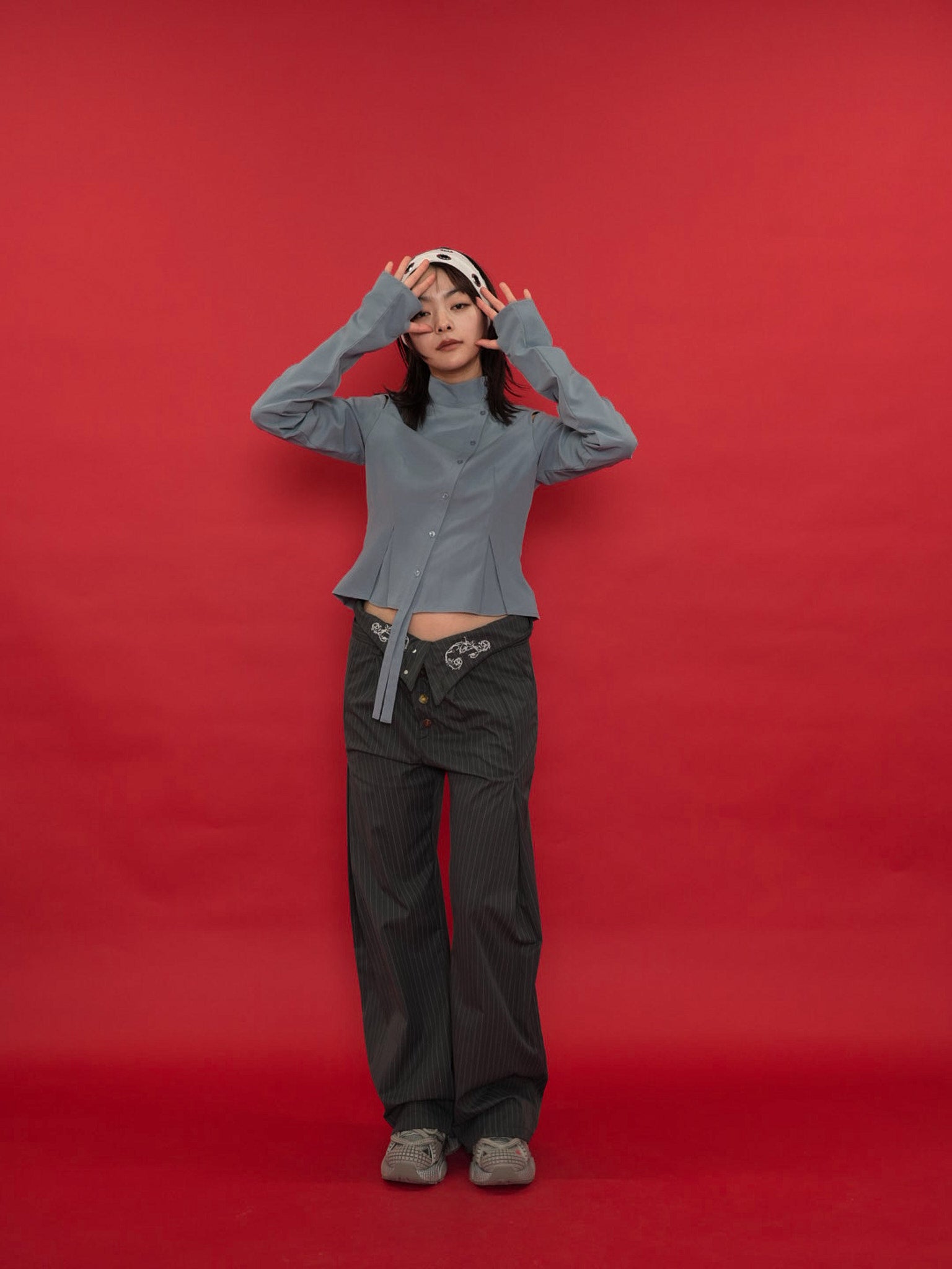 ボタンディテールが印象的なワイドシルエットパンツ。ウエストの留め方で表情が変わる2way仕様で、ハイウエストにもローライズにも着用可能。落ち感のある素材が動きを美しく見せ、スタイリングに程よい緊張感を与える一本。