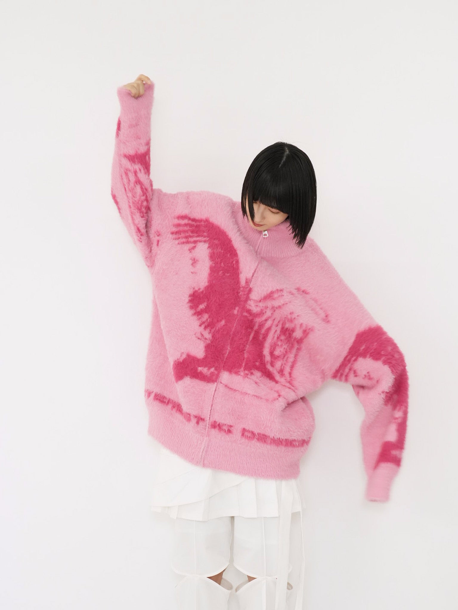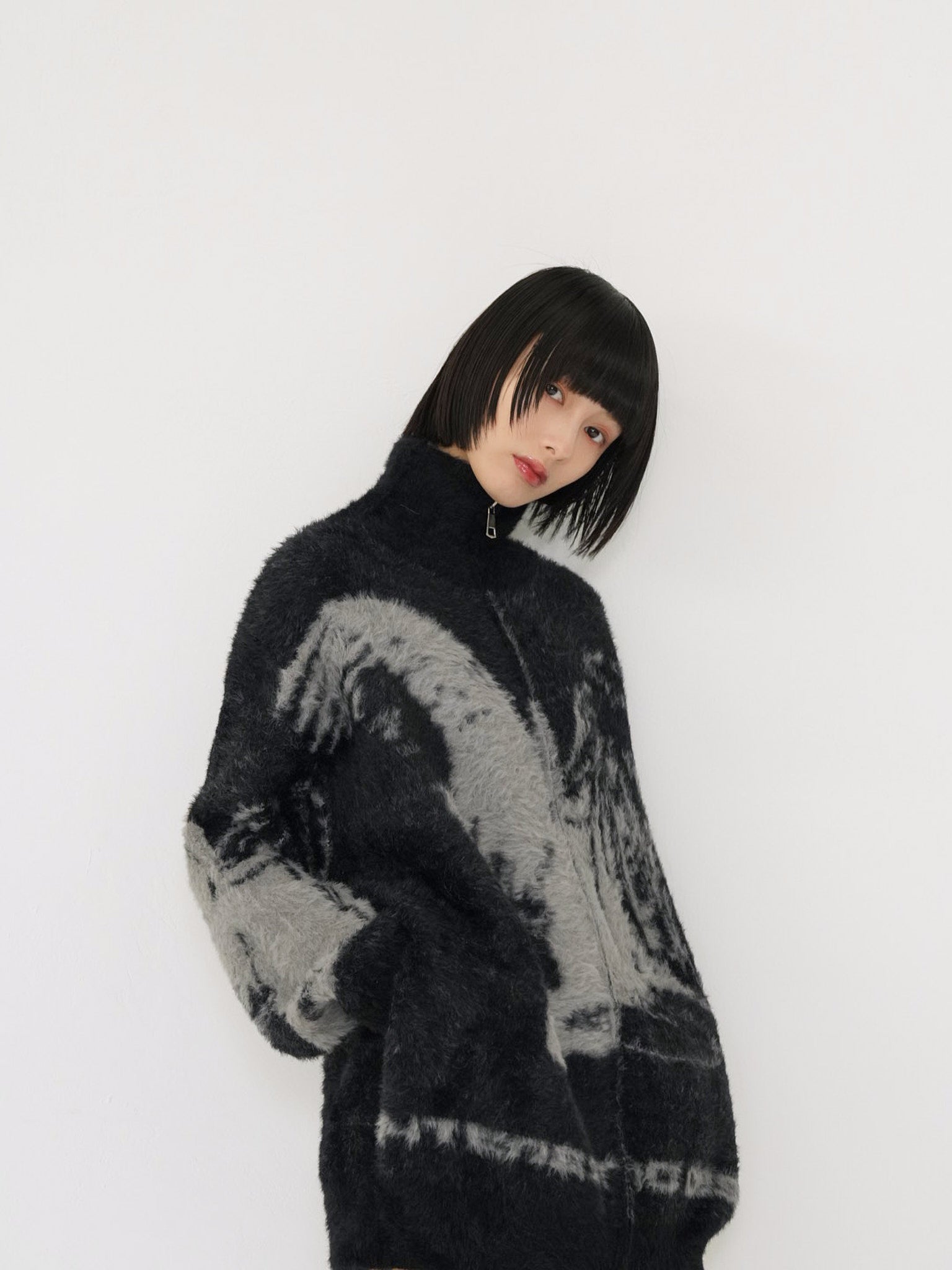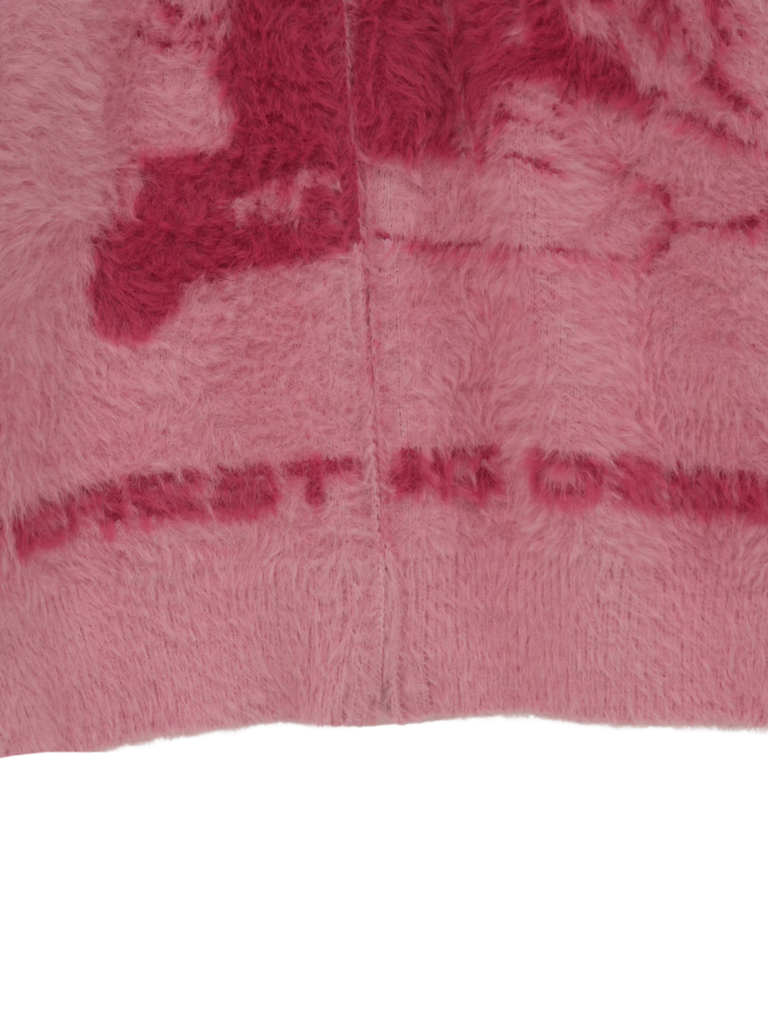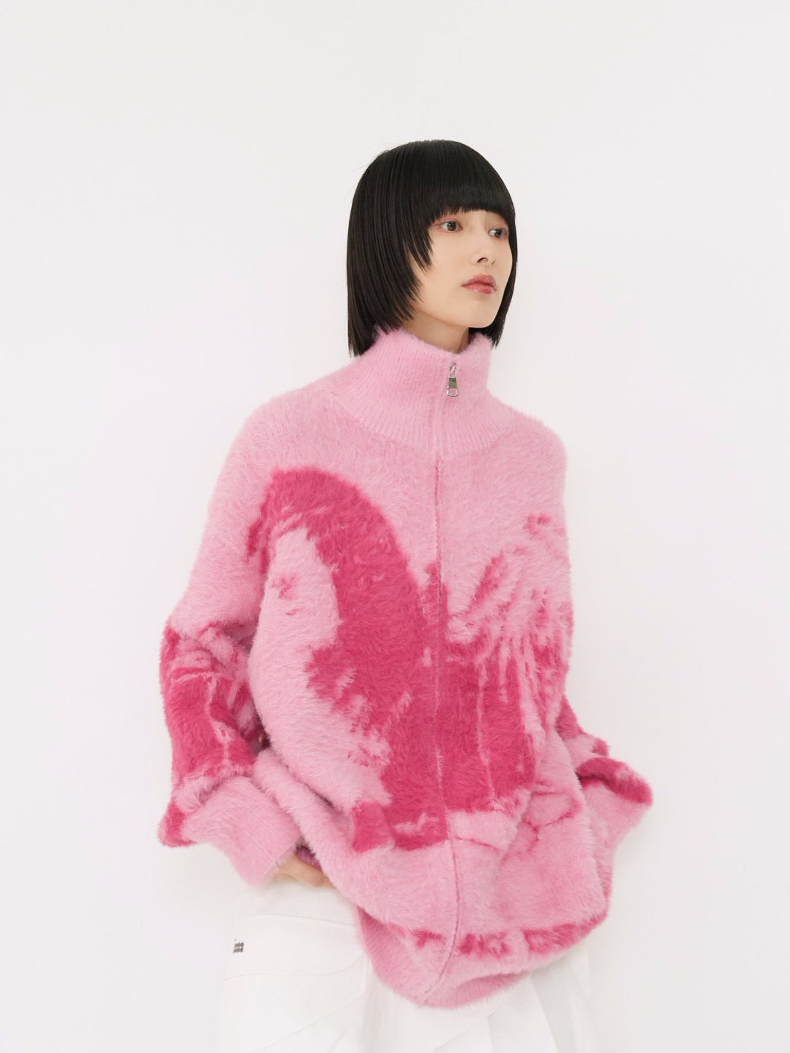 天使モチーフを大胆に編み込んだフルジップニット。