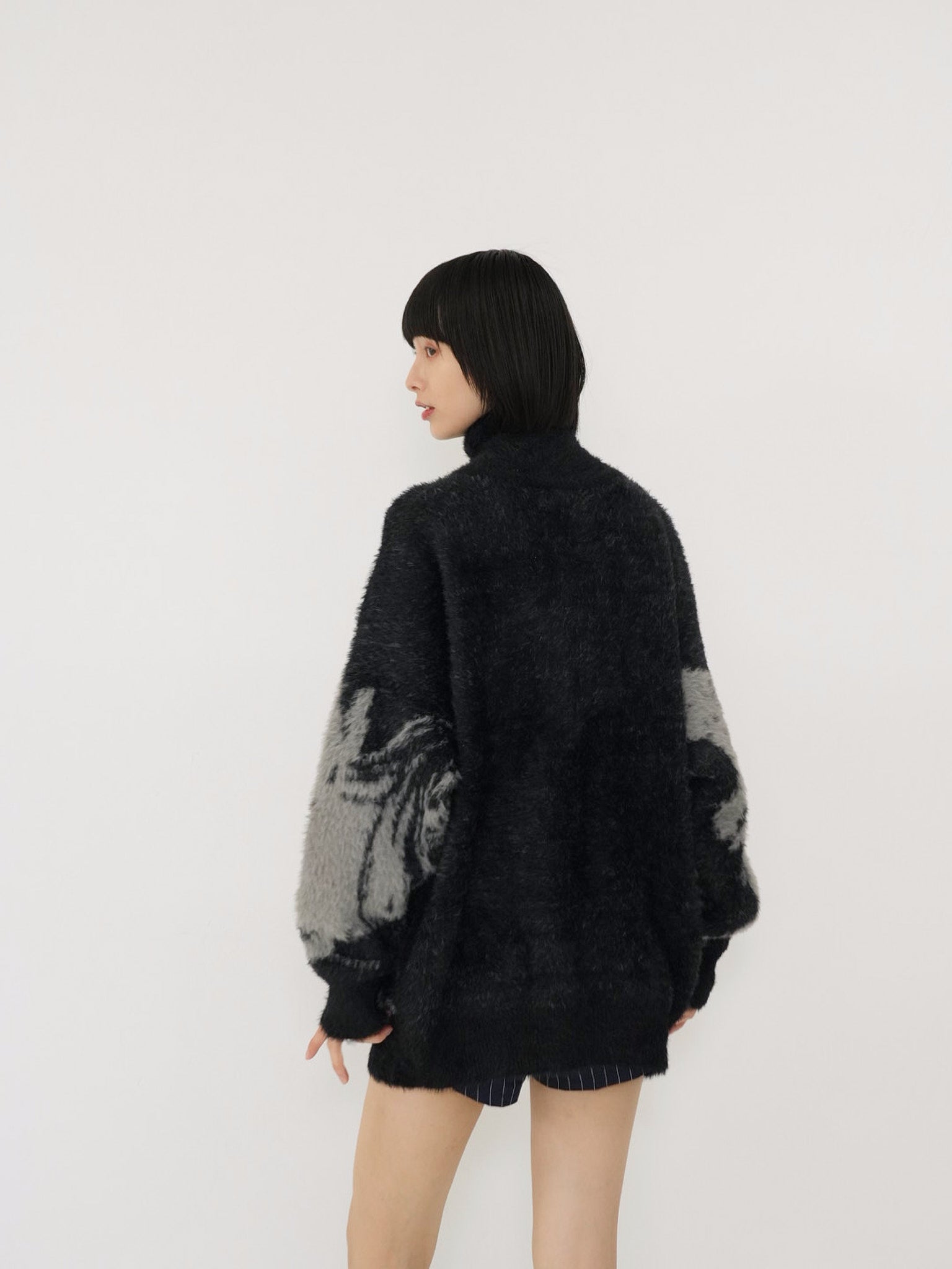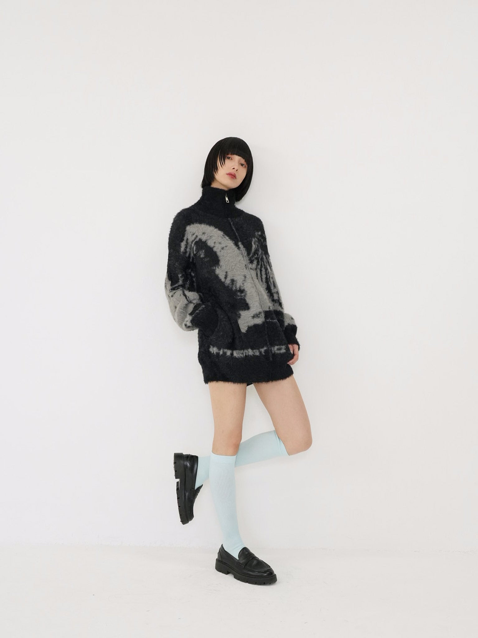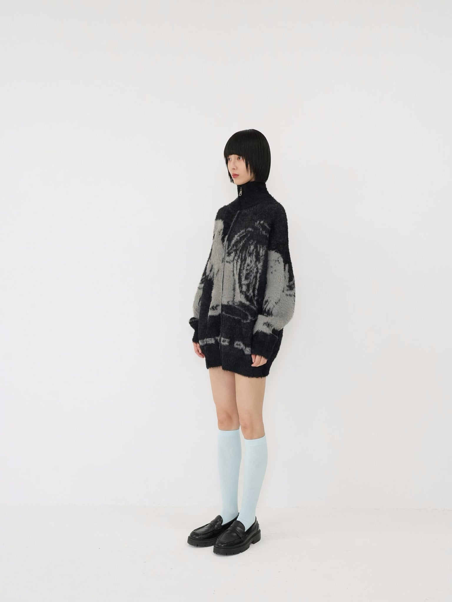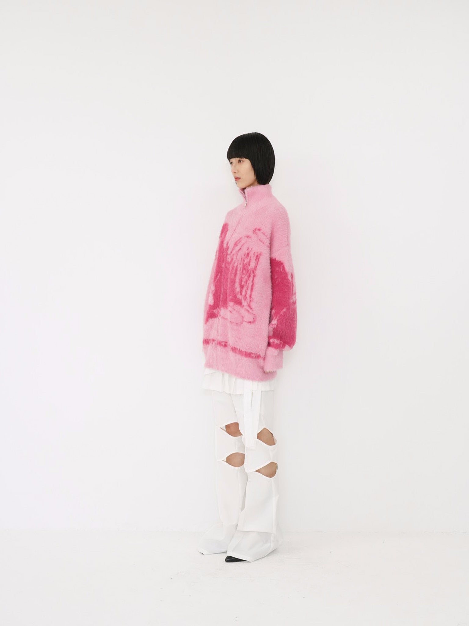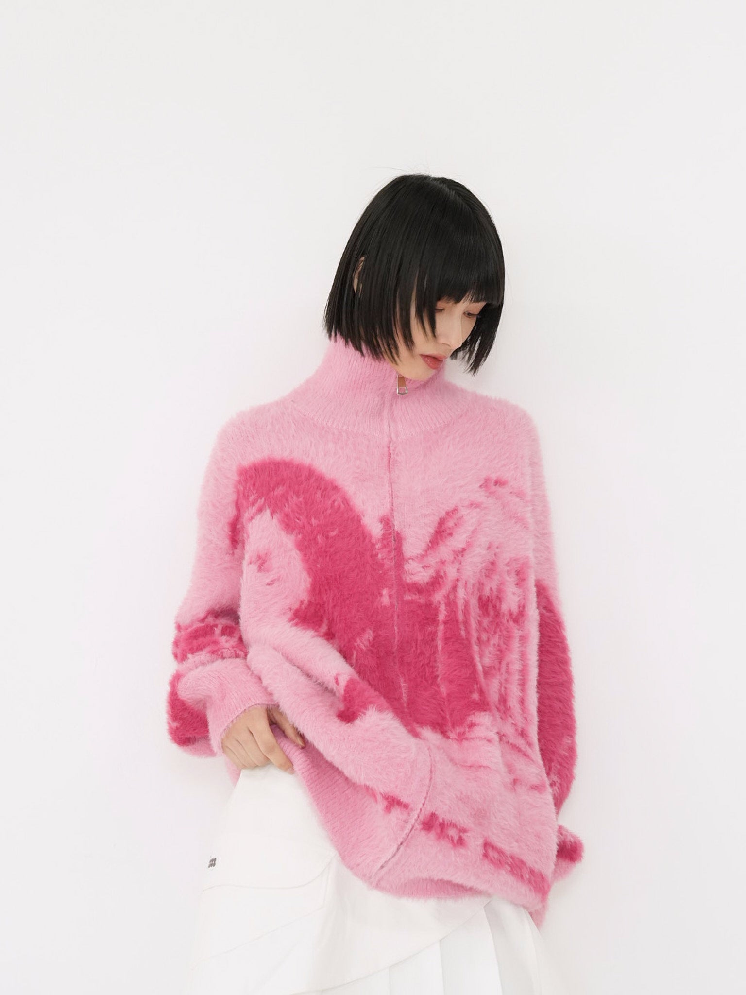 天使モチーフを大胆に編み込んだフルジップニット。
