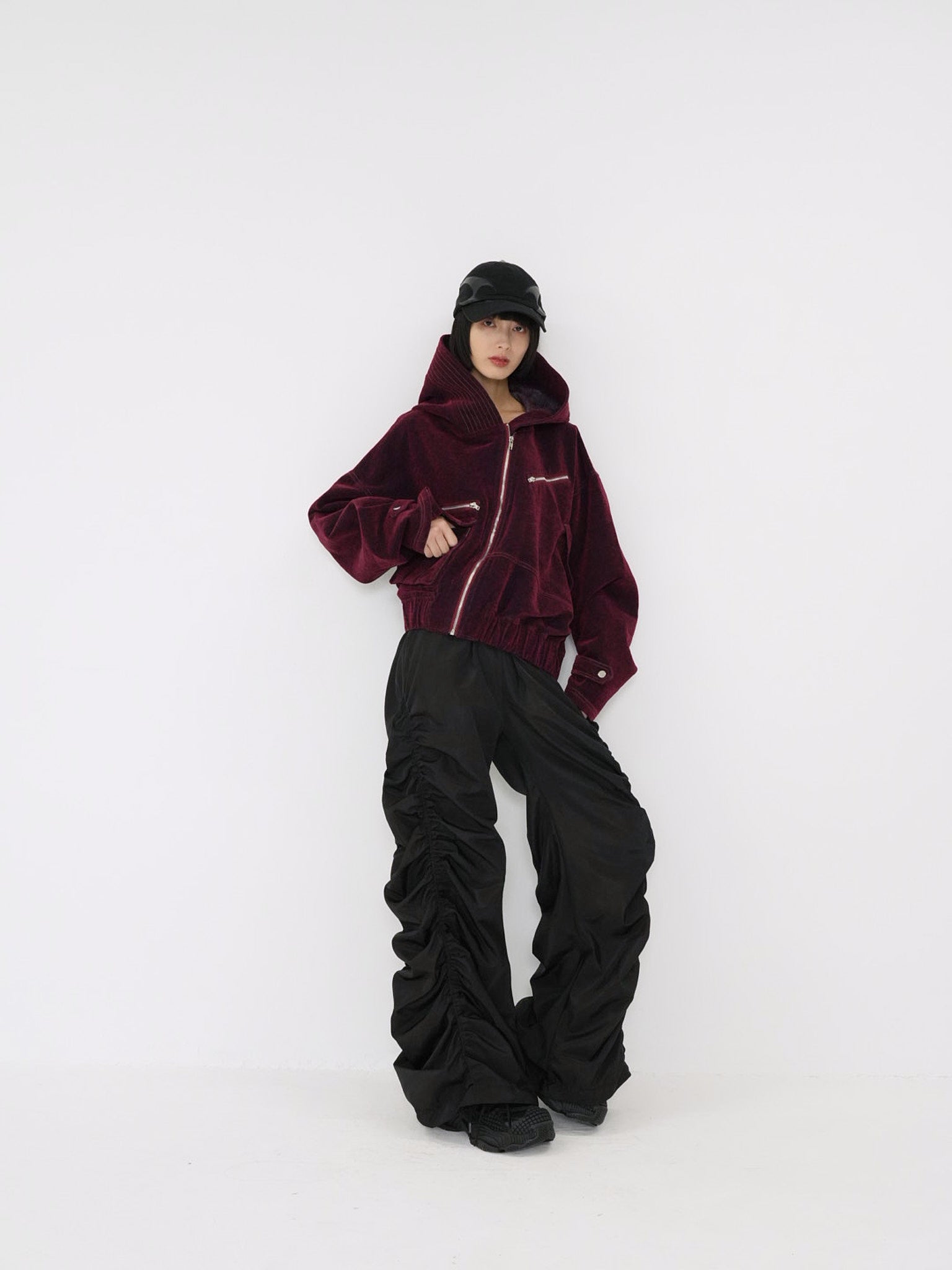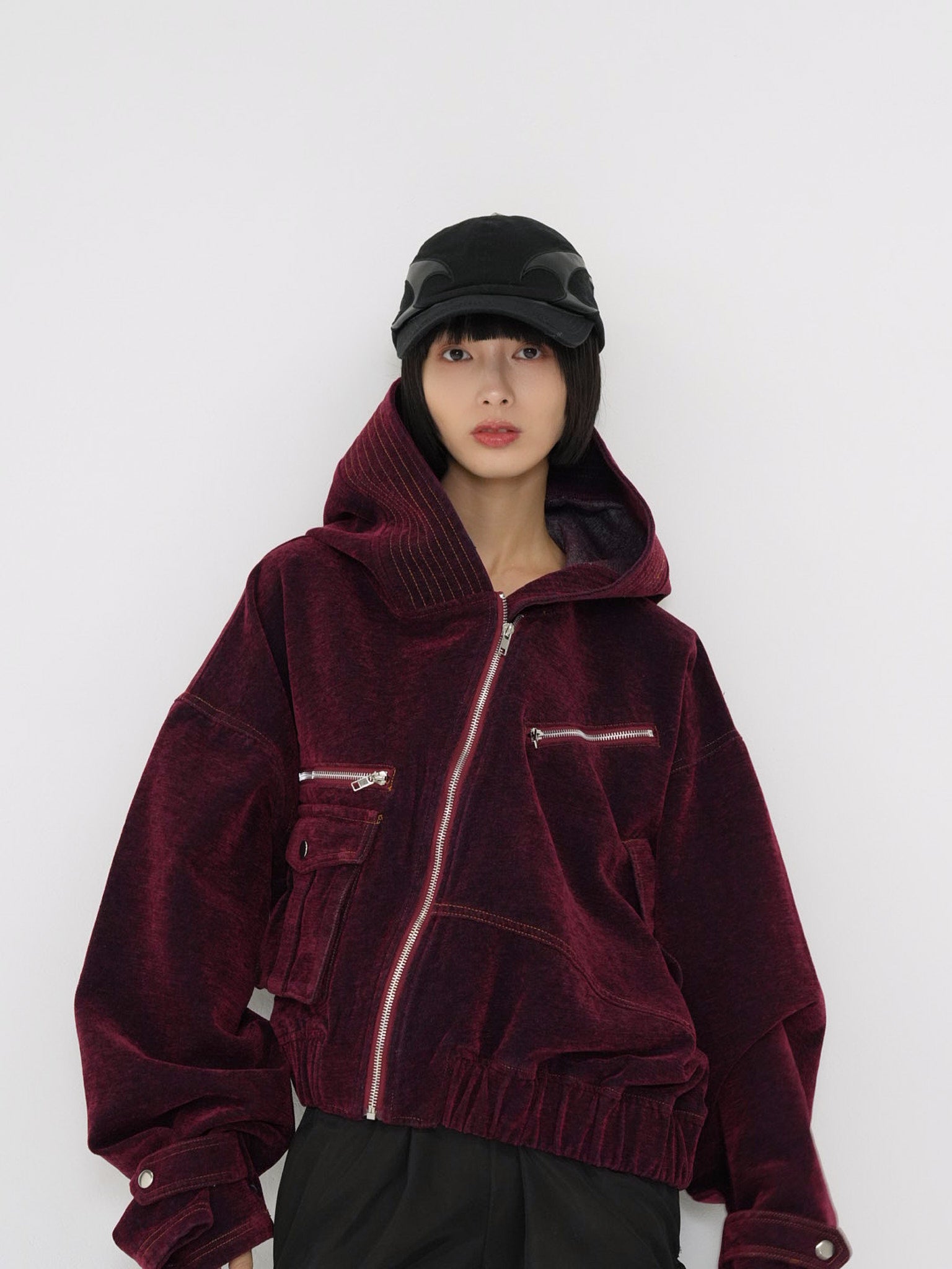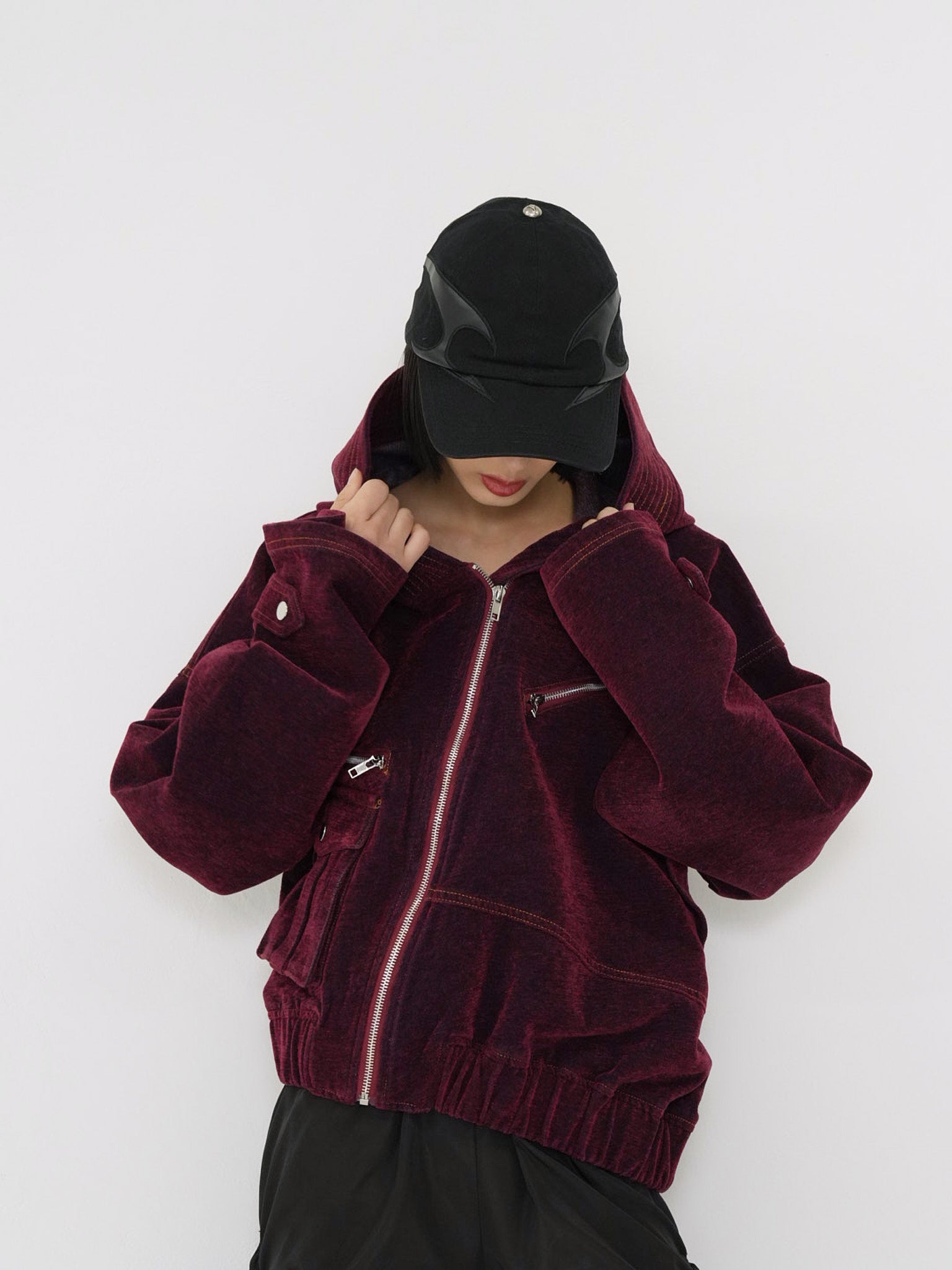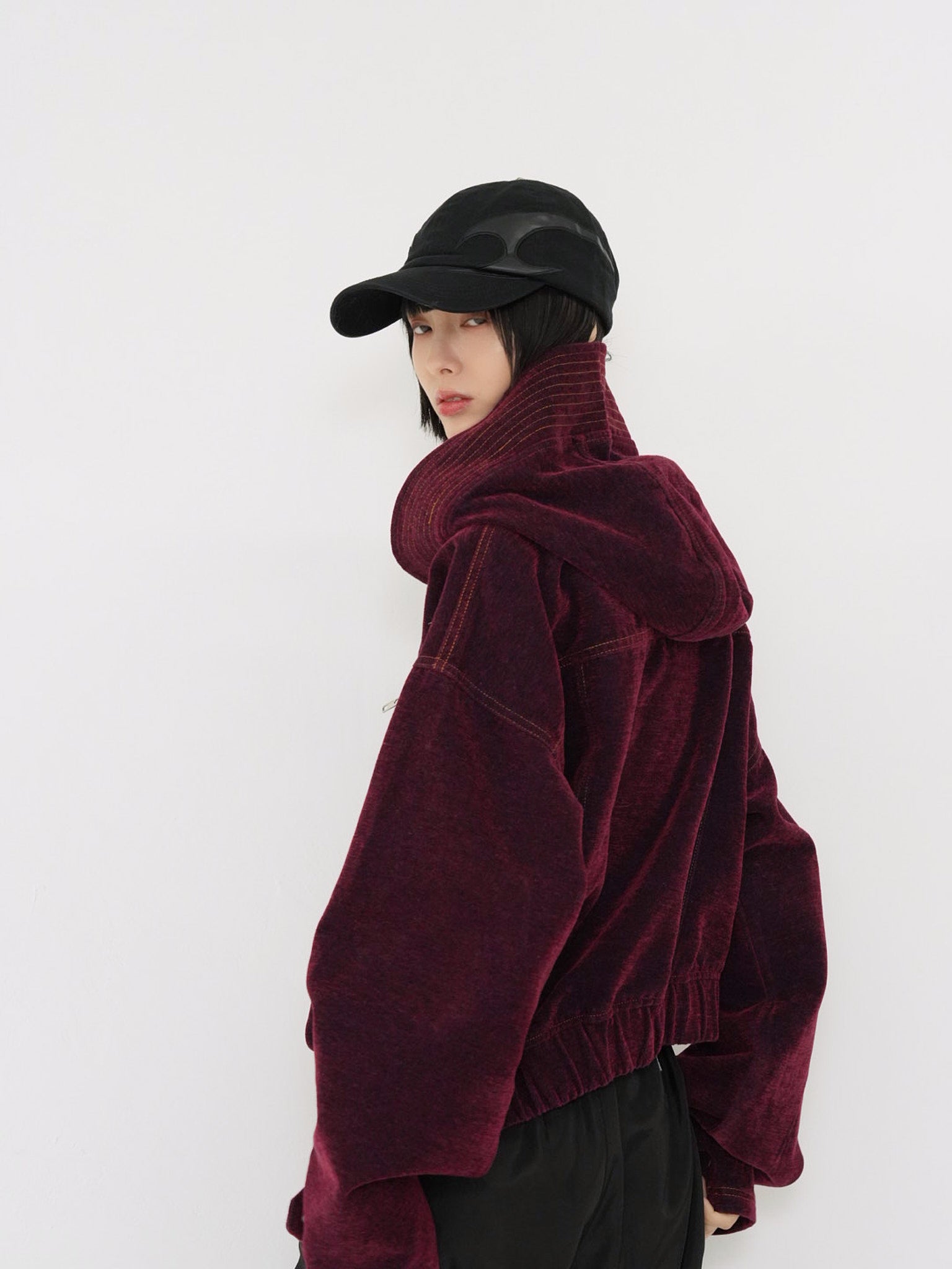 立体的な“盾”のようなパネルデザインが特徴のブラックキャップ。