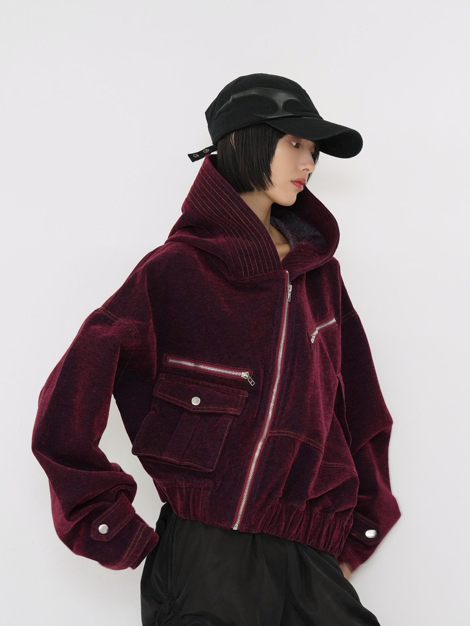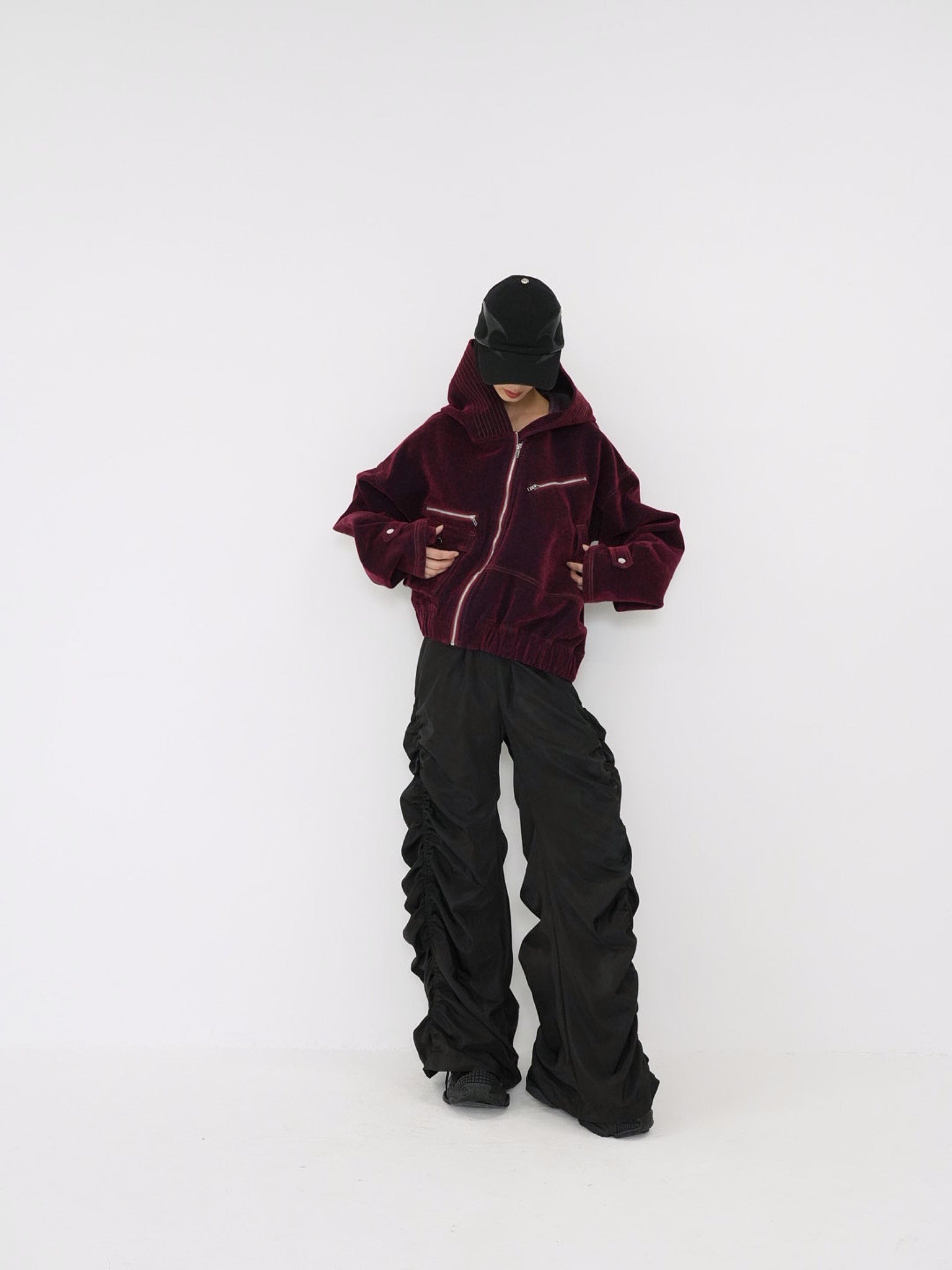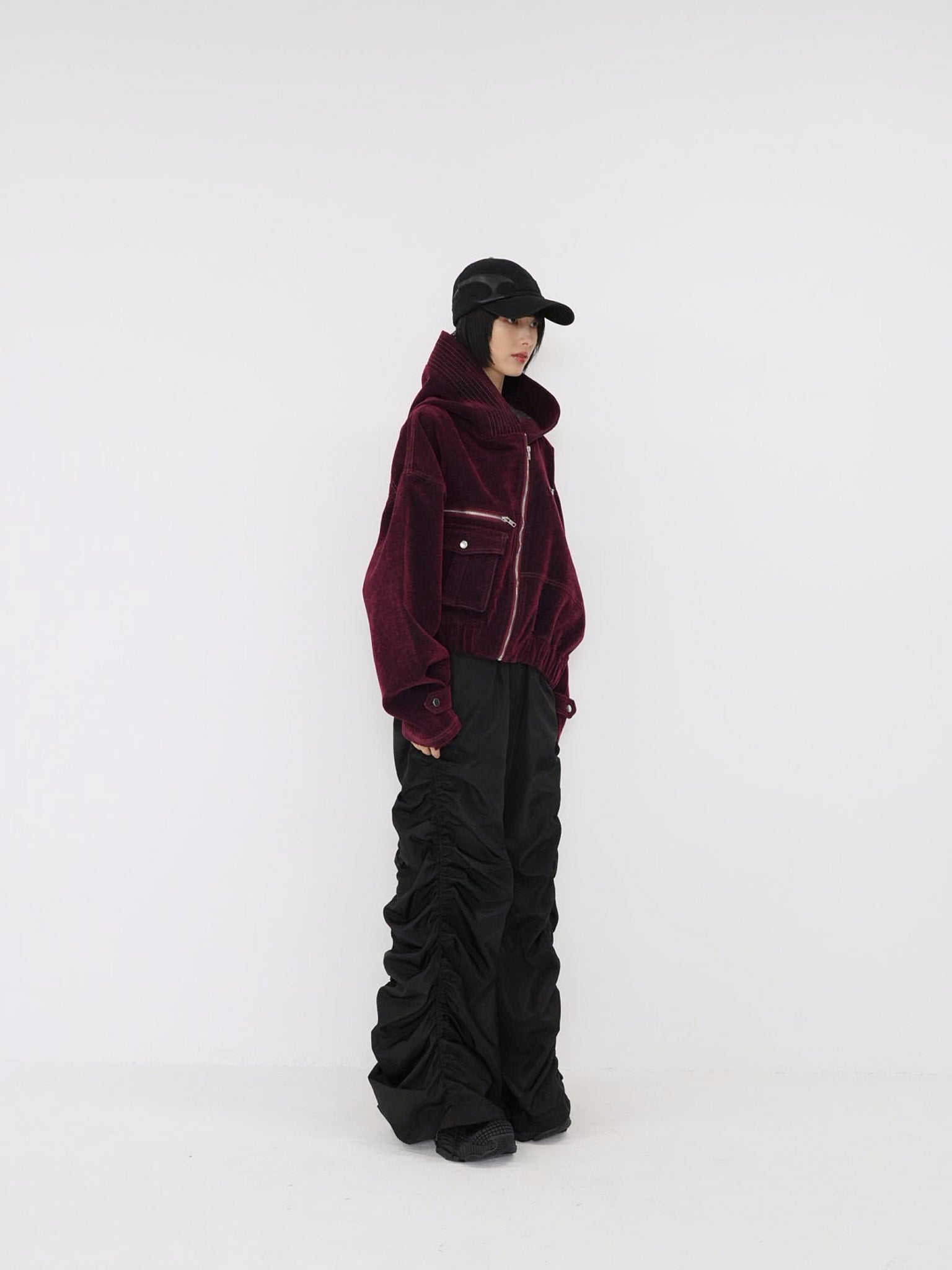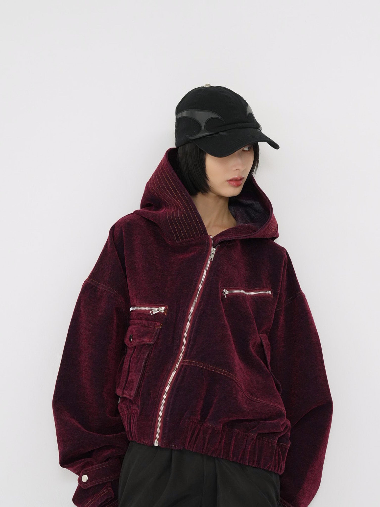 立体的な“盾”のようなパネルデザインが特徴のブラックキャップ。
