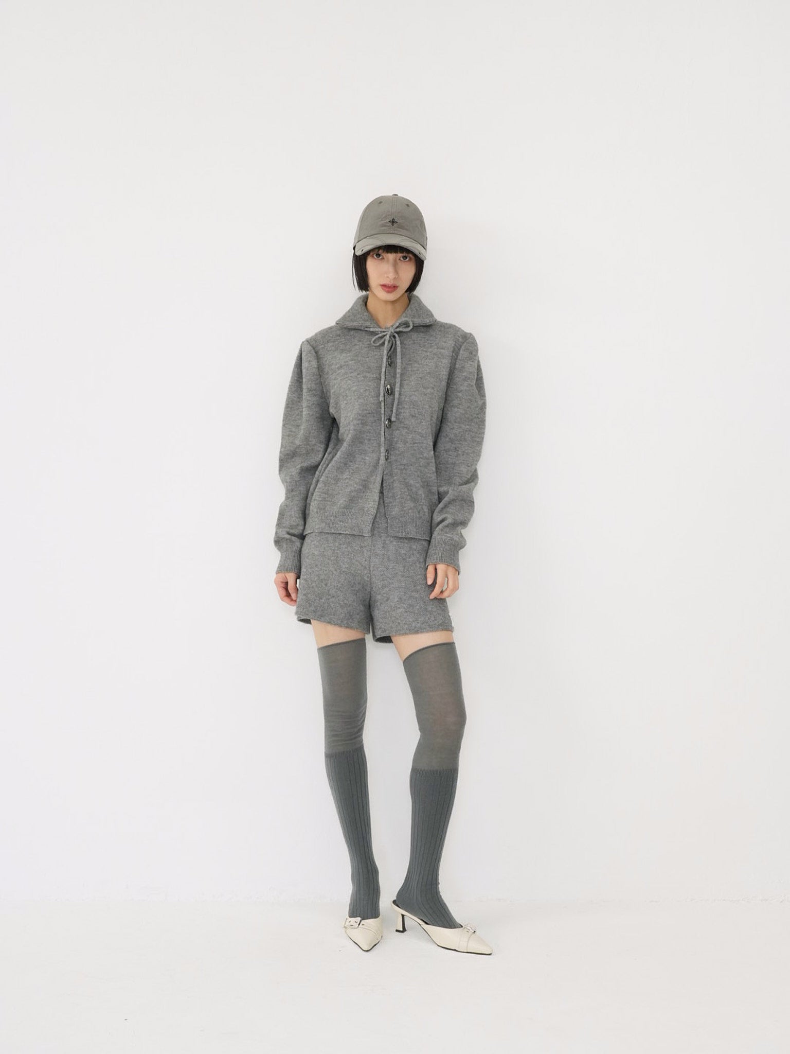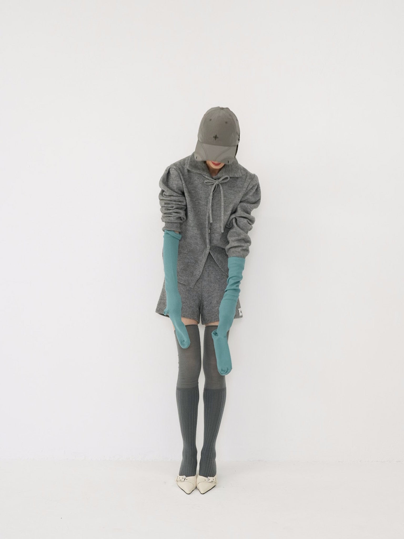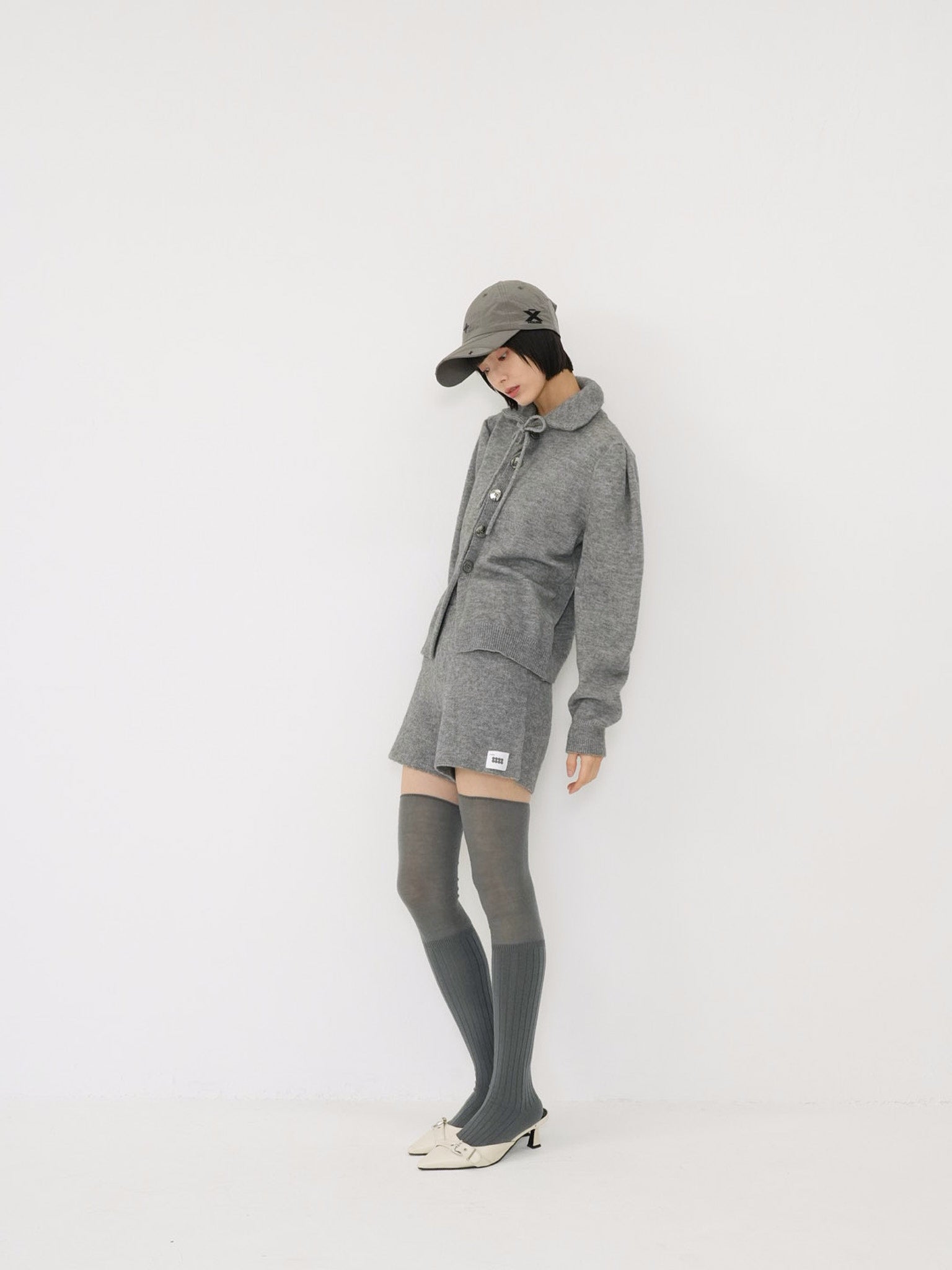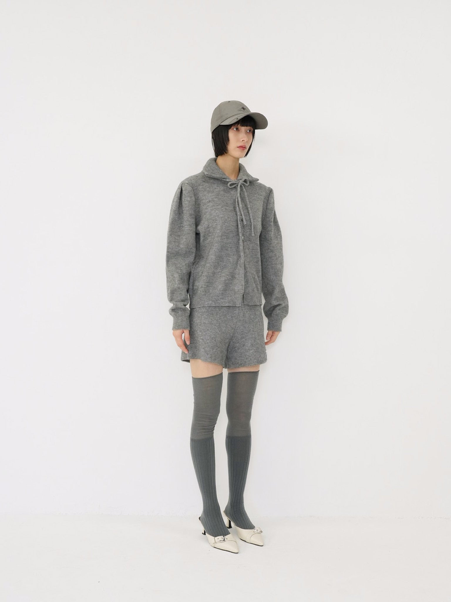 優しい肌触りのニット生地に首元のリボンがポイントのトップスとパンツのセットアップ。