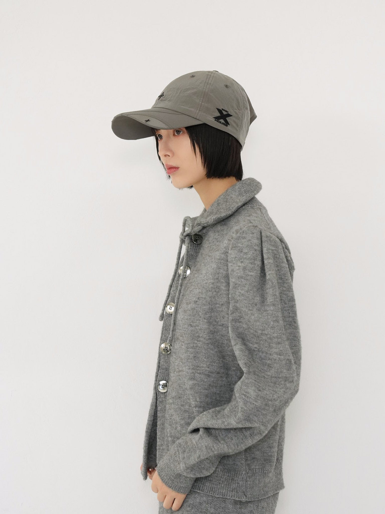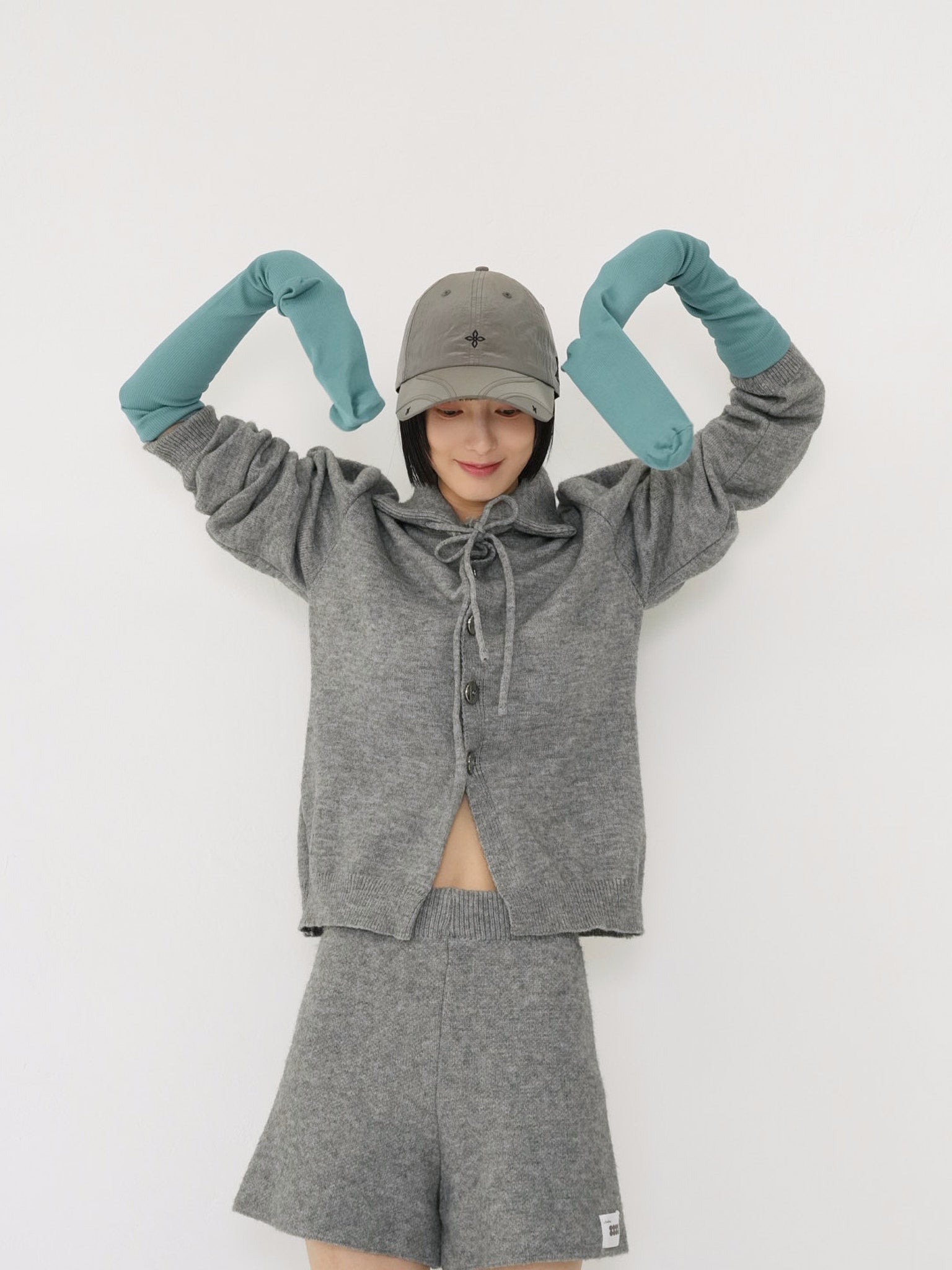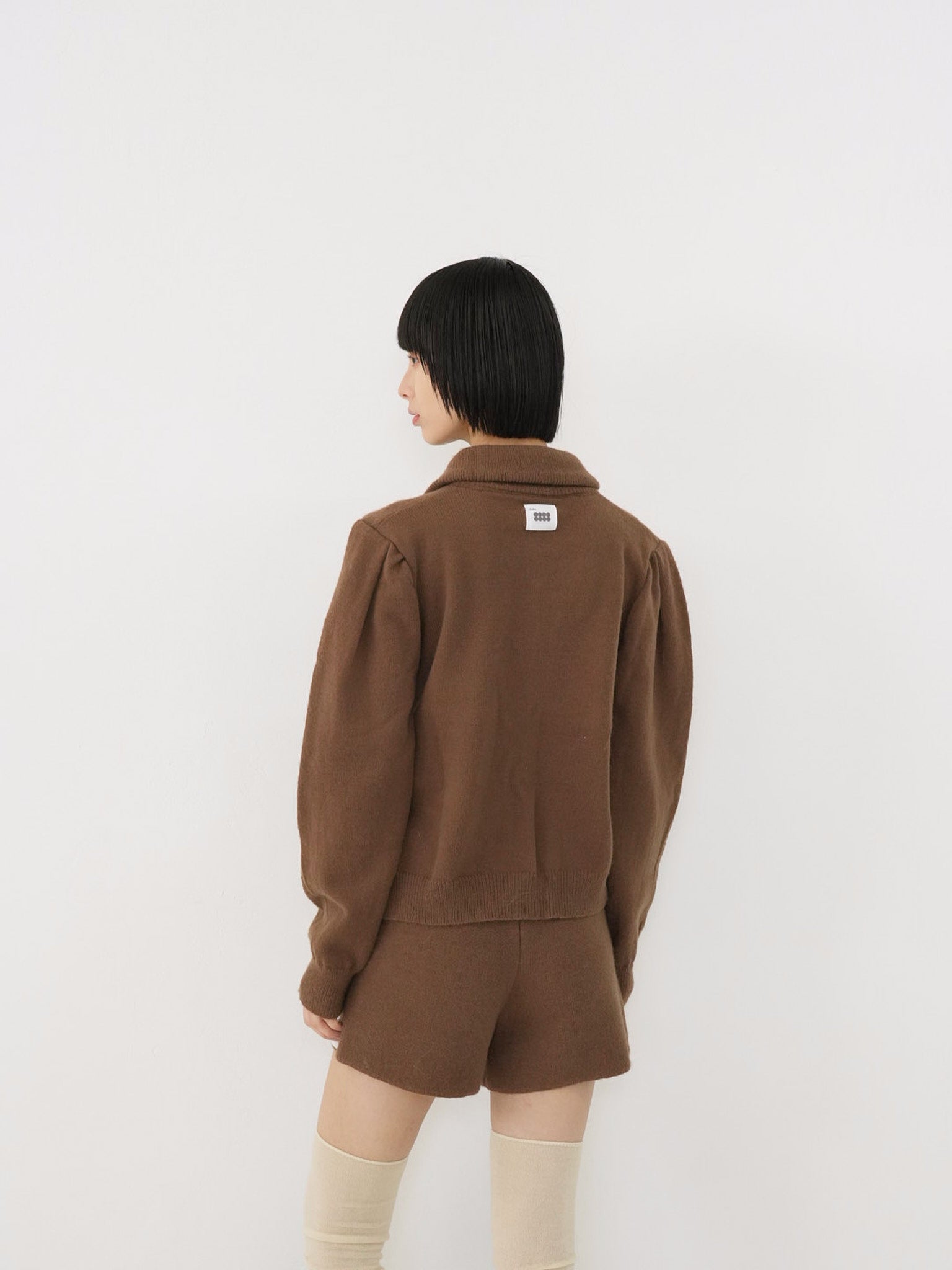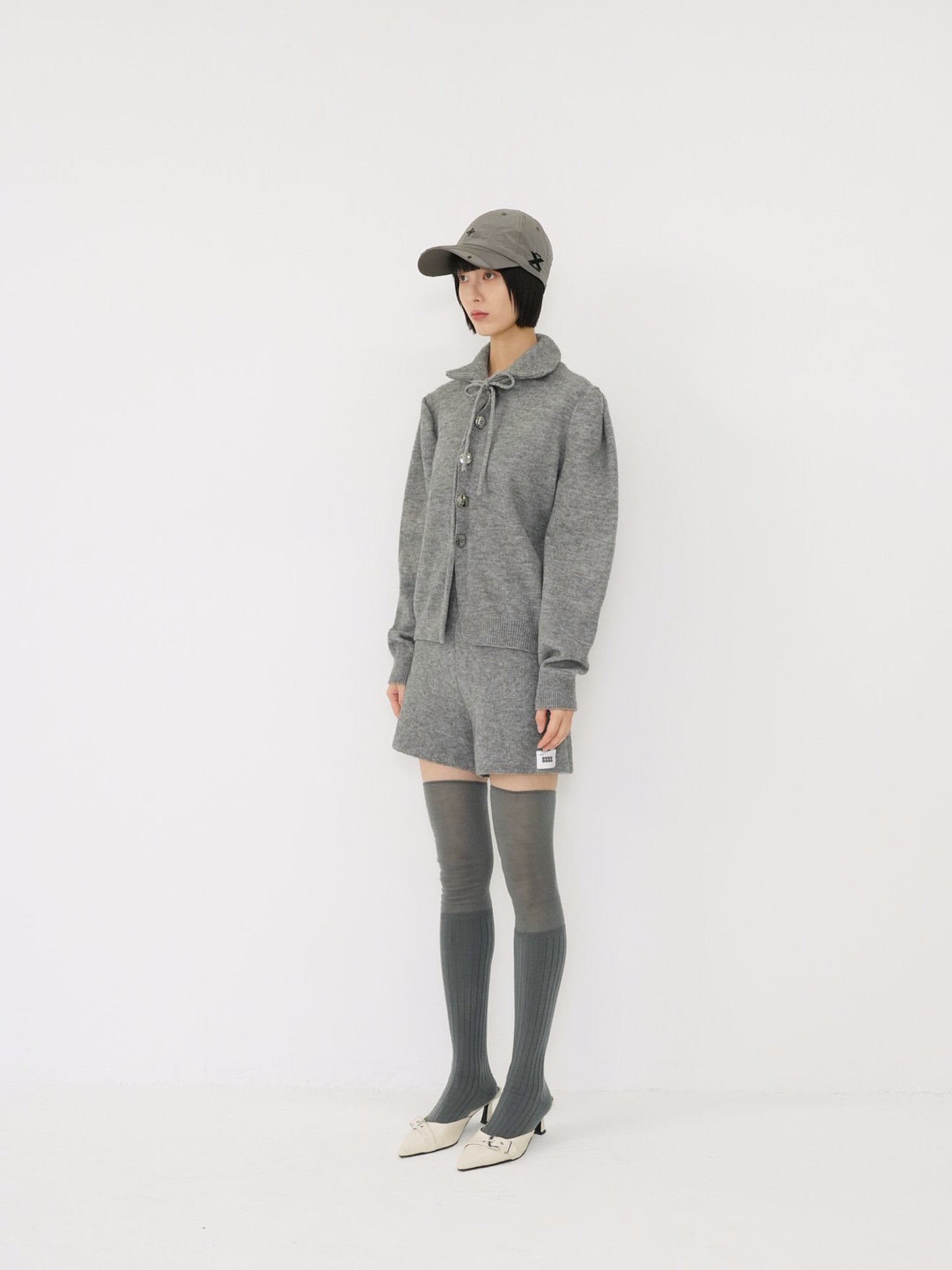 優しい肌触りのニット生地に首元のリボンがポイントのトップスとパンツのセットアップ。