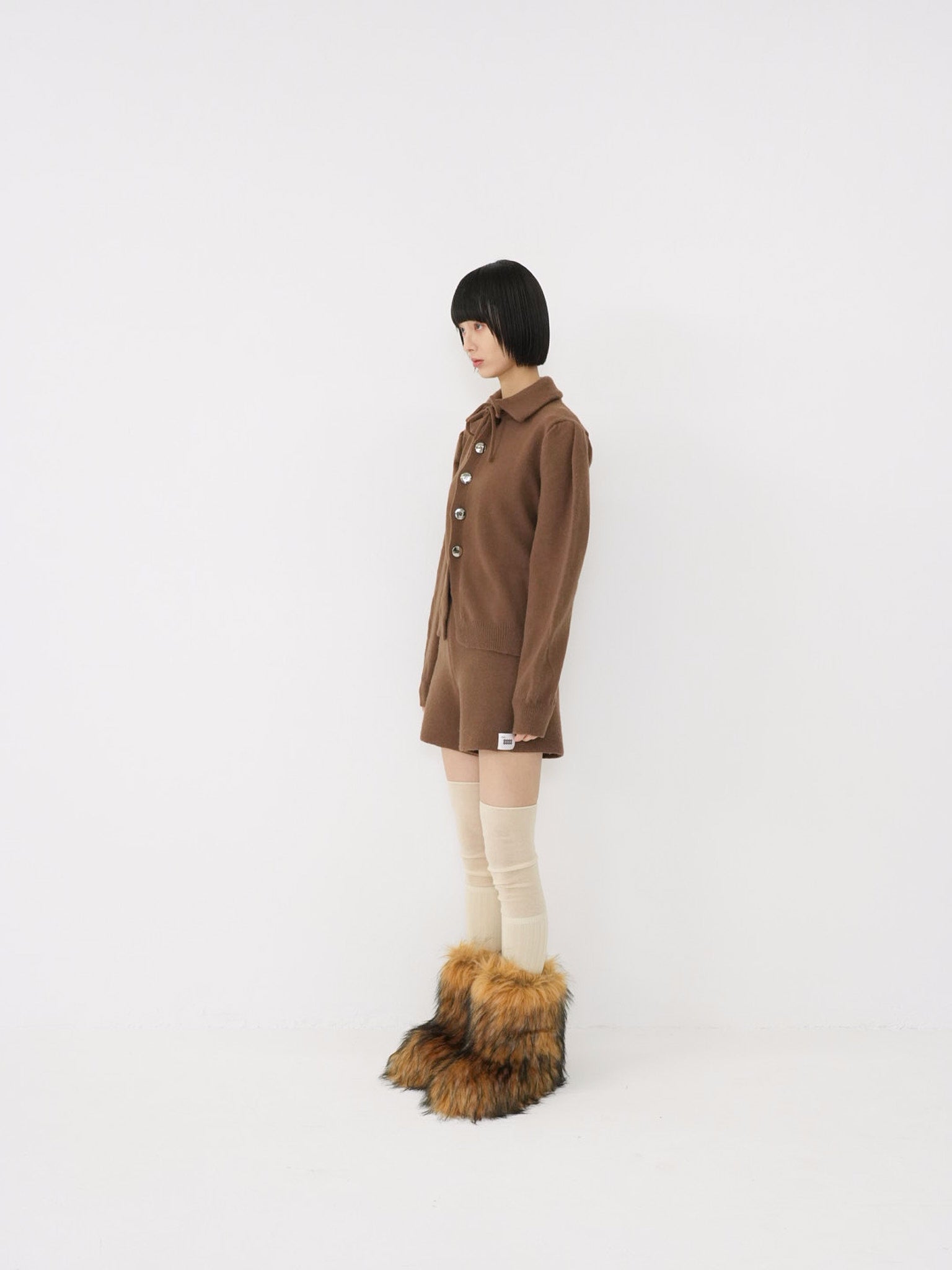 ロングブーツやショートブーツと合わせるスタイリングがおすすめ。