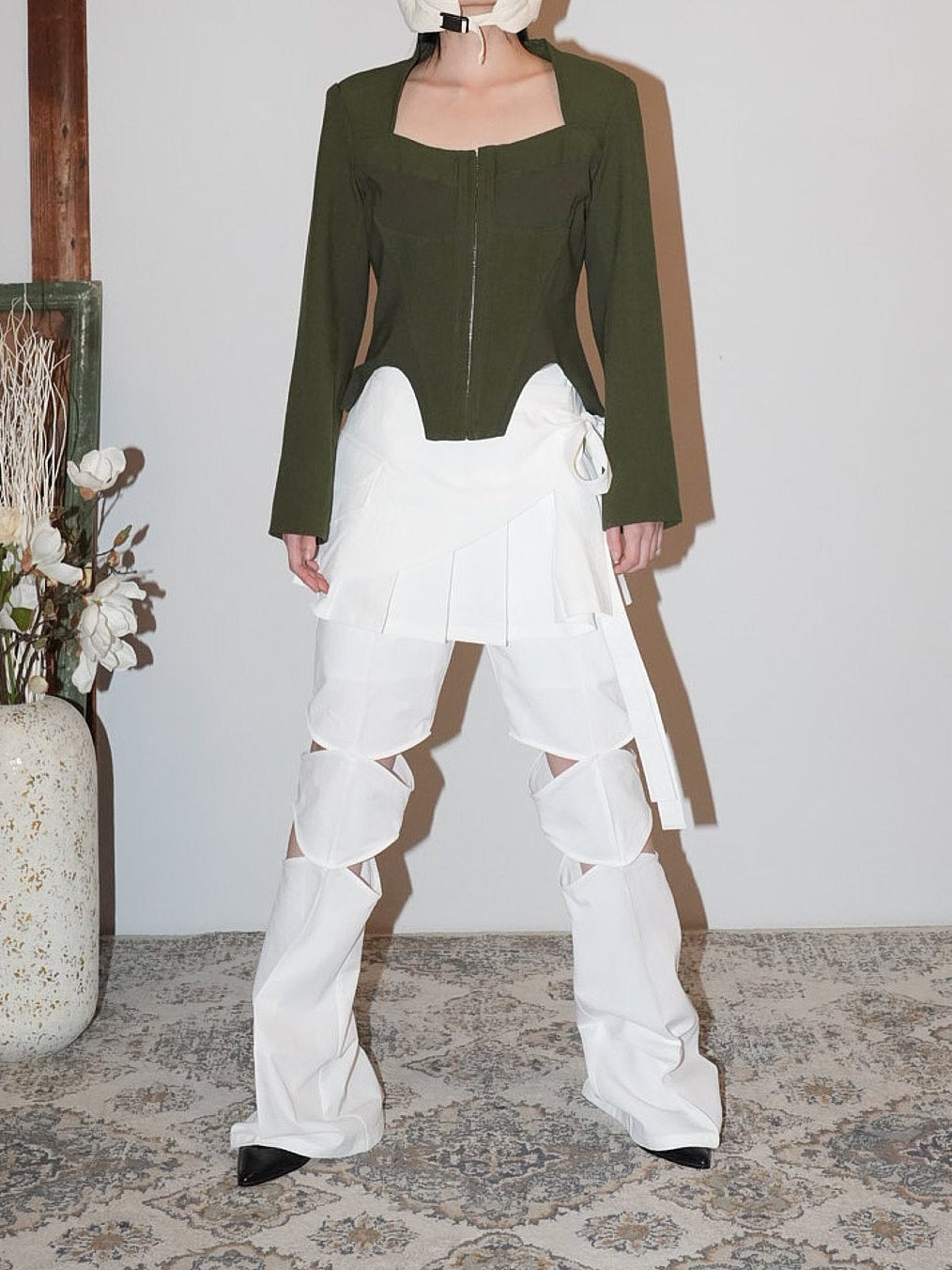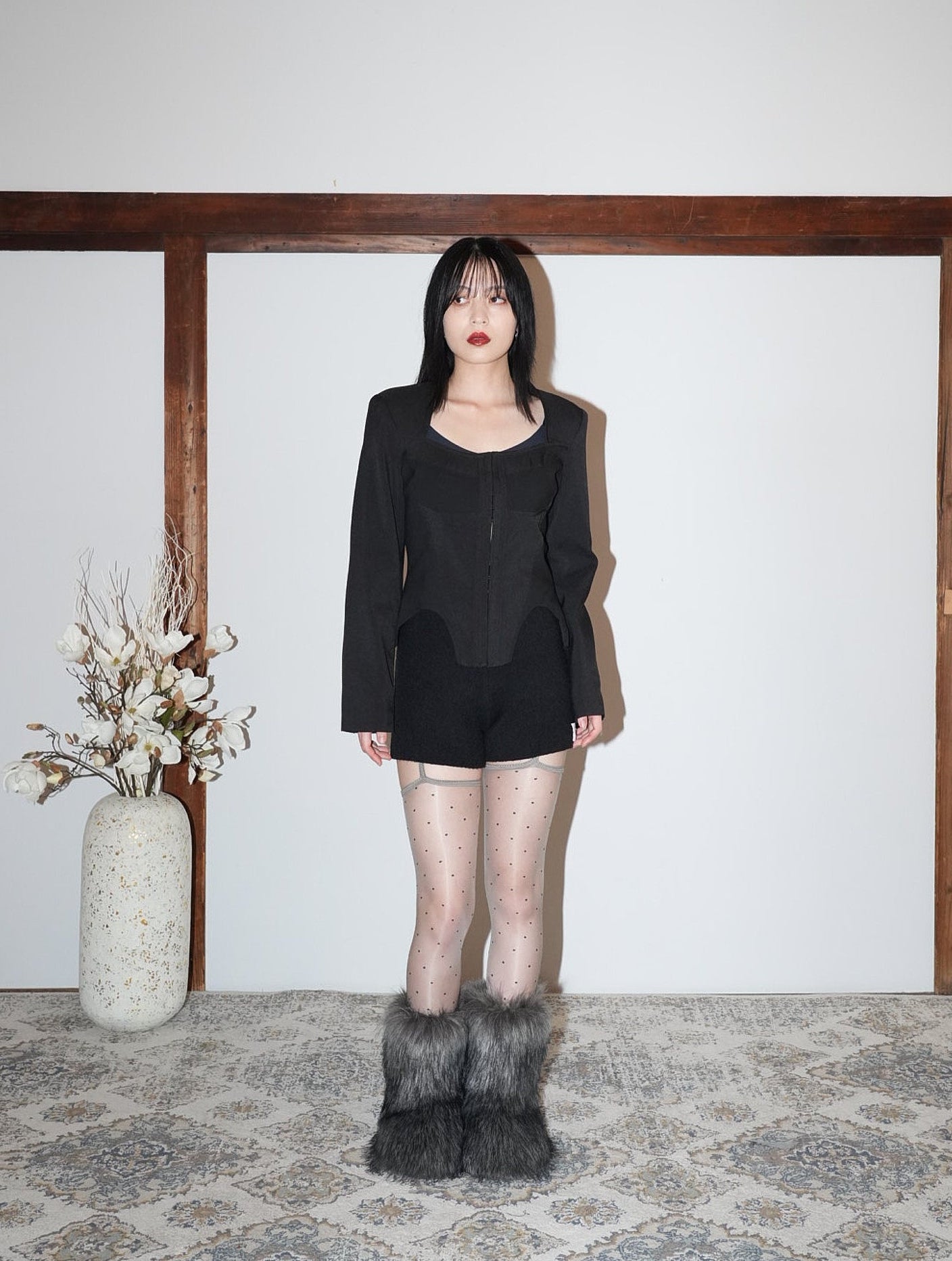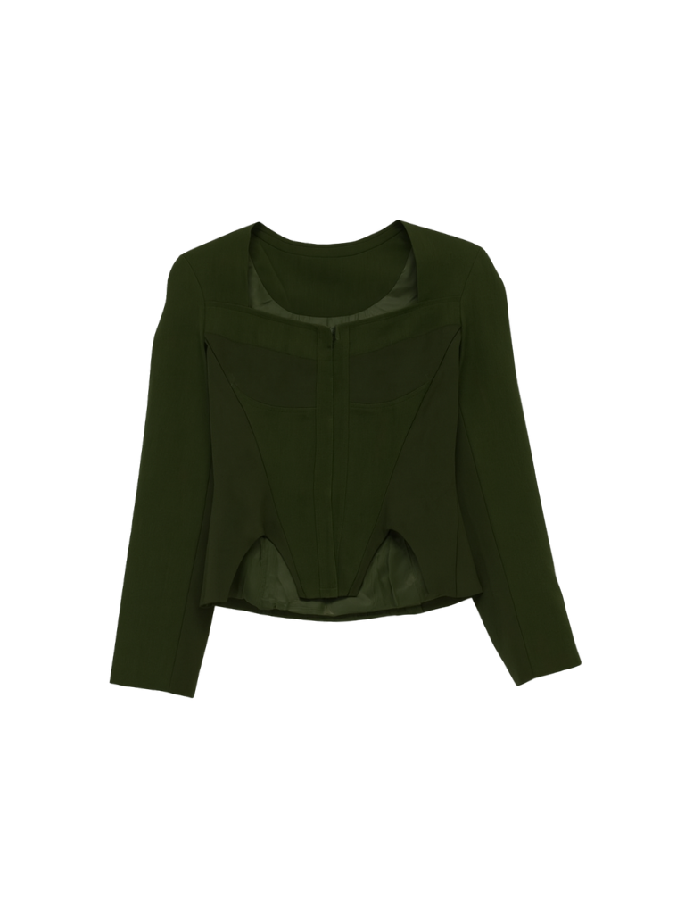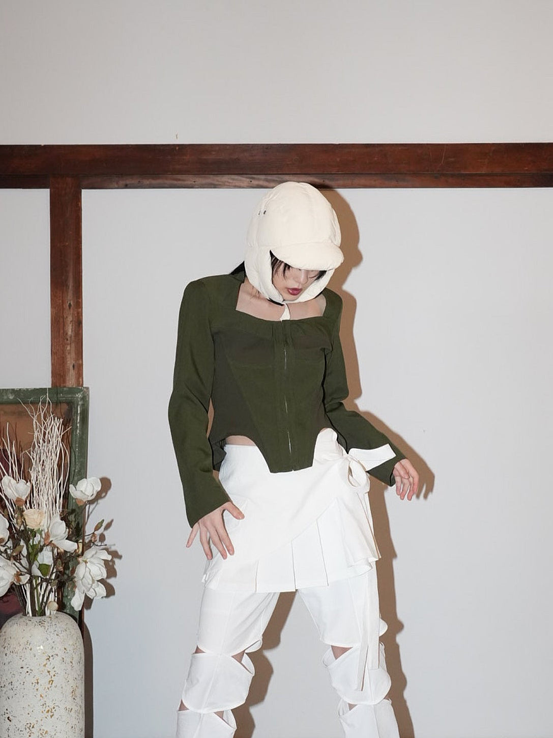 大胆なカッティングと構築的なシルエットが印象的なコルセット風トップス。