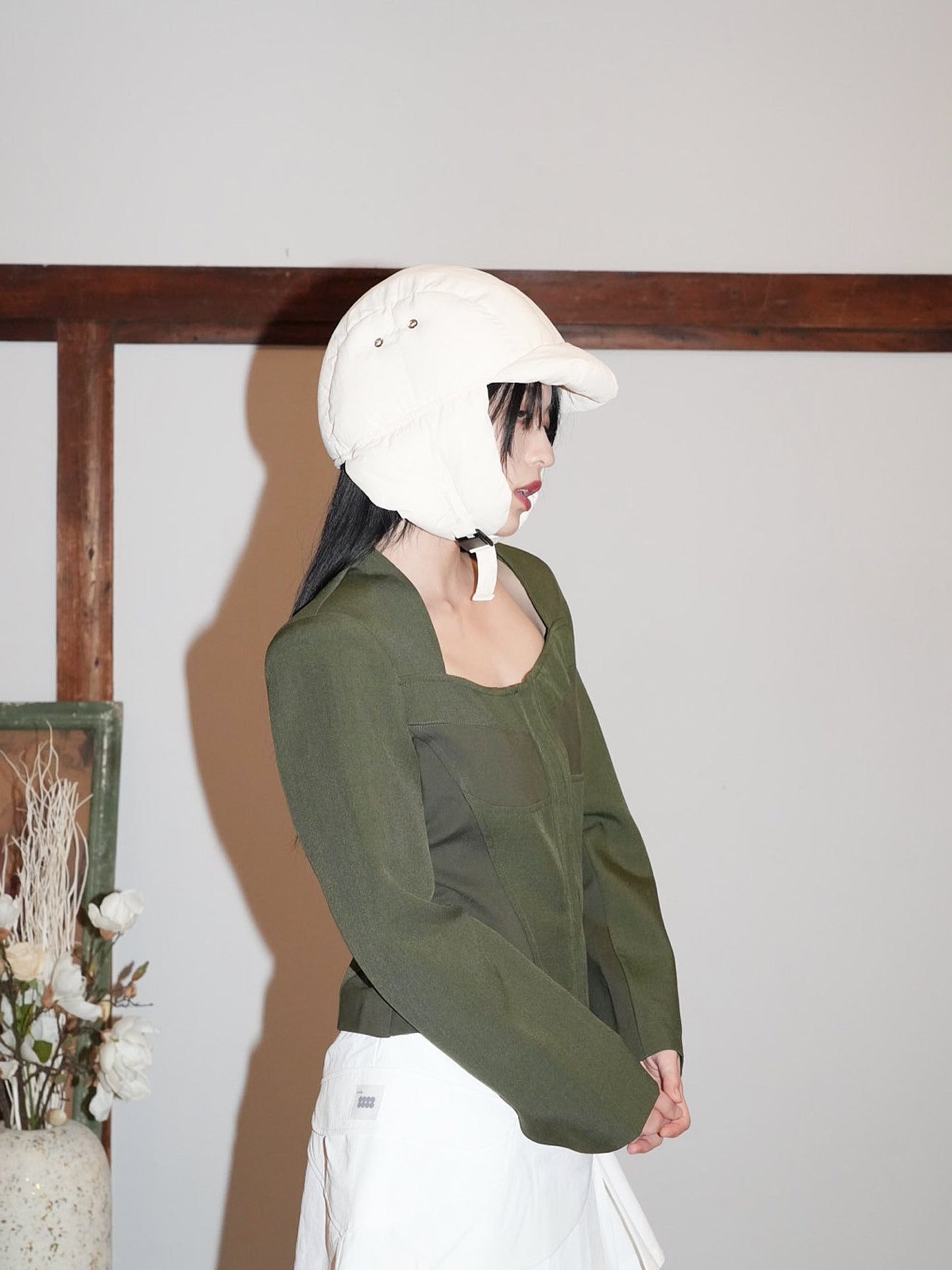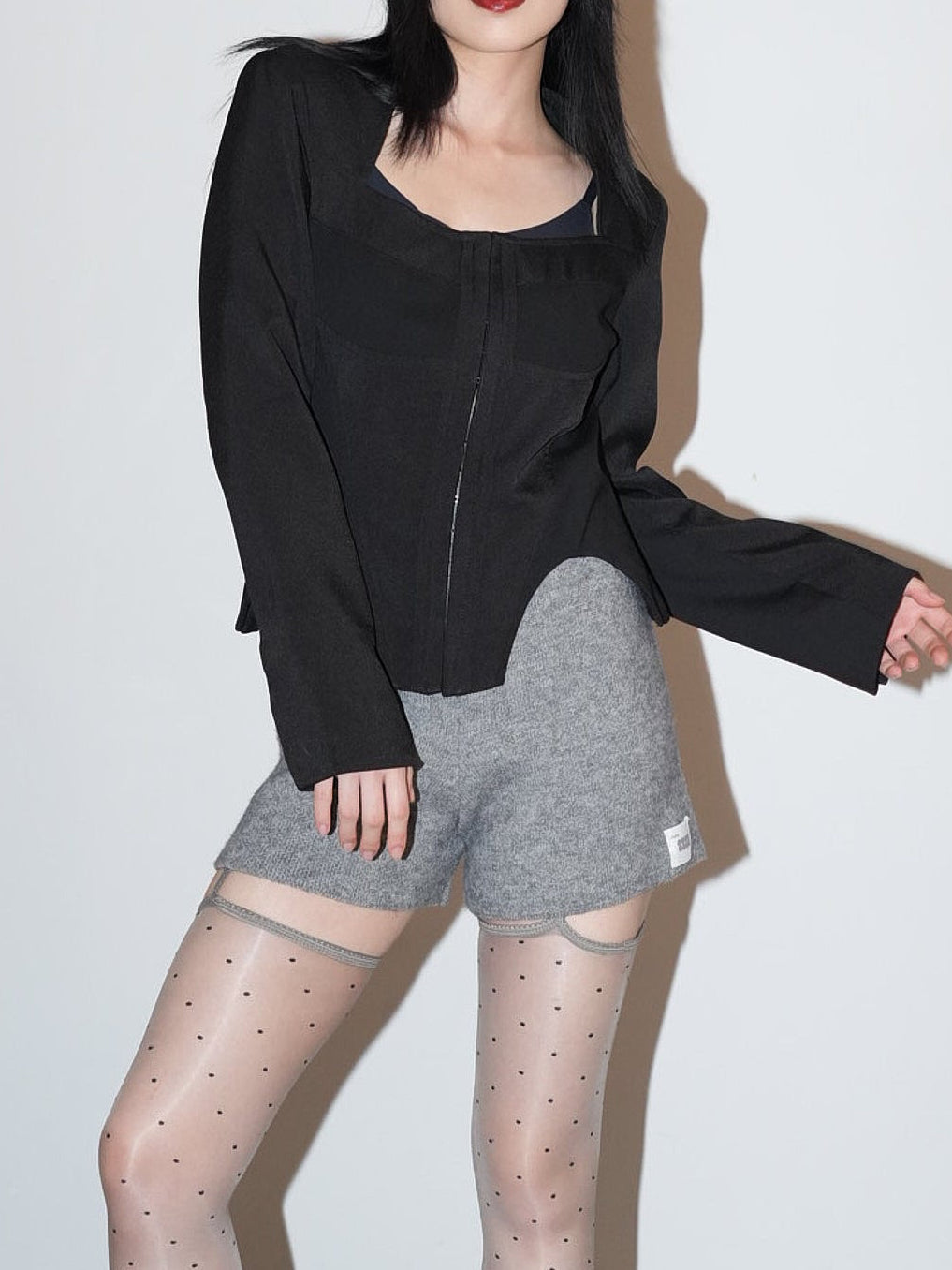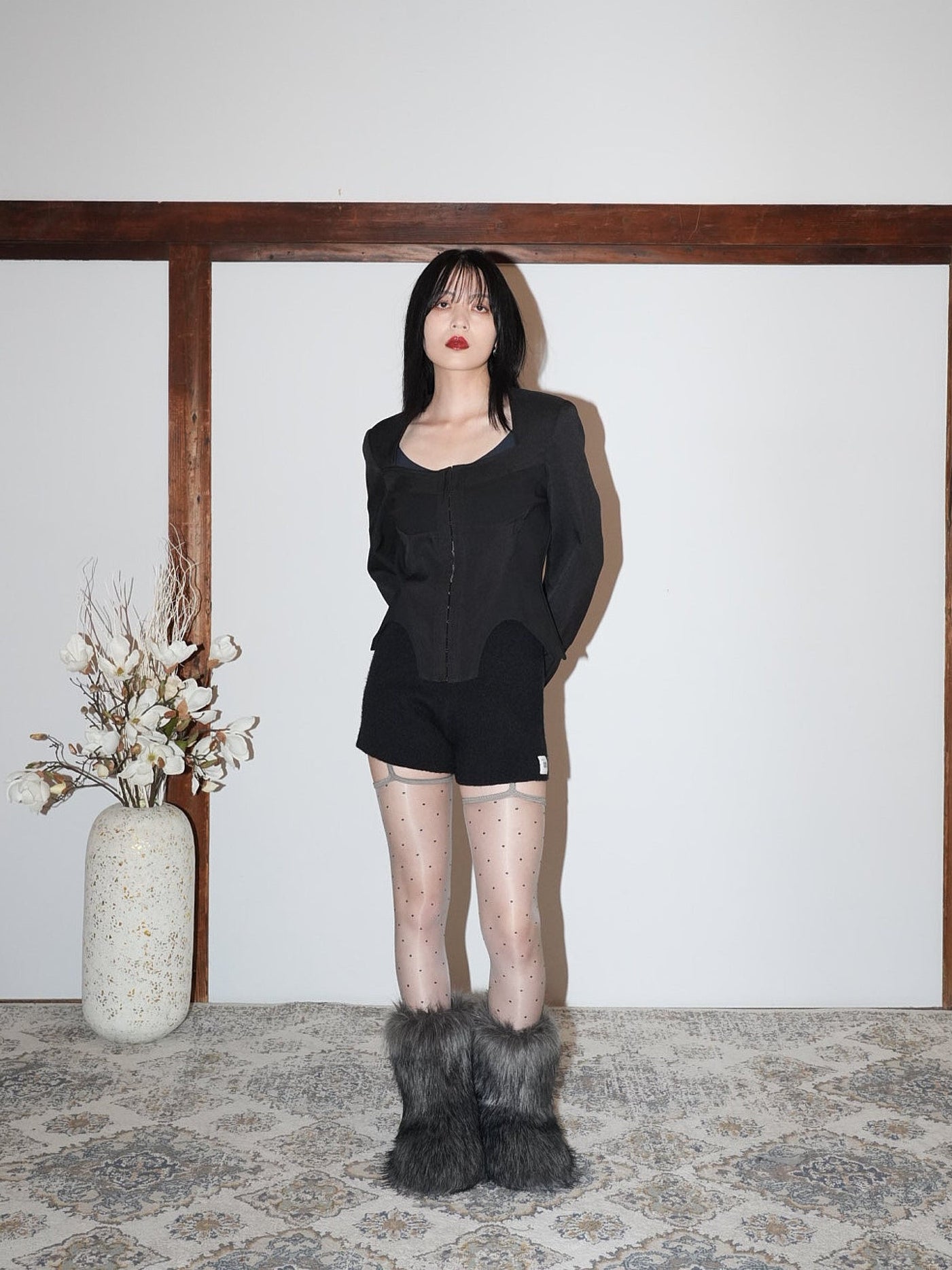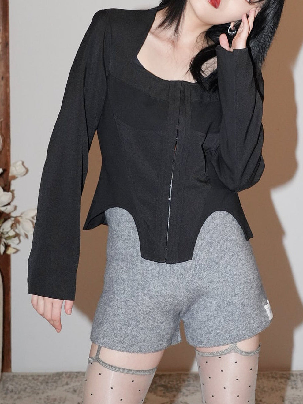 大胆なカッティングと構築的なシルエットが印象的なコルセット風トップス。