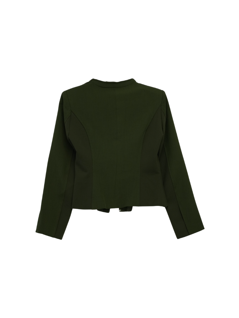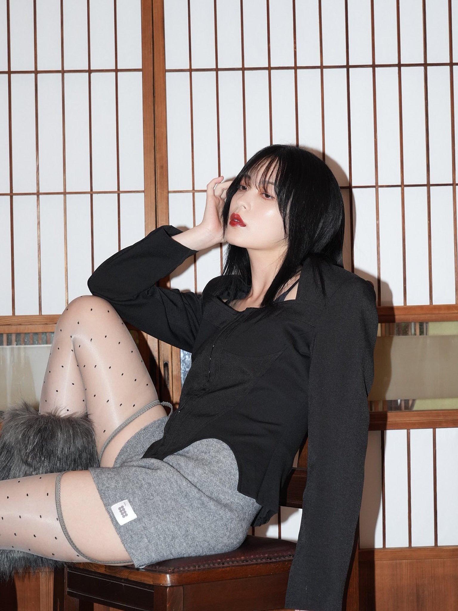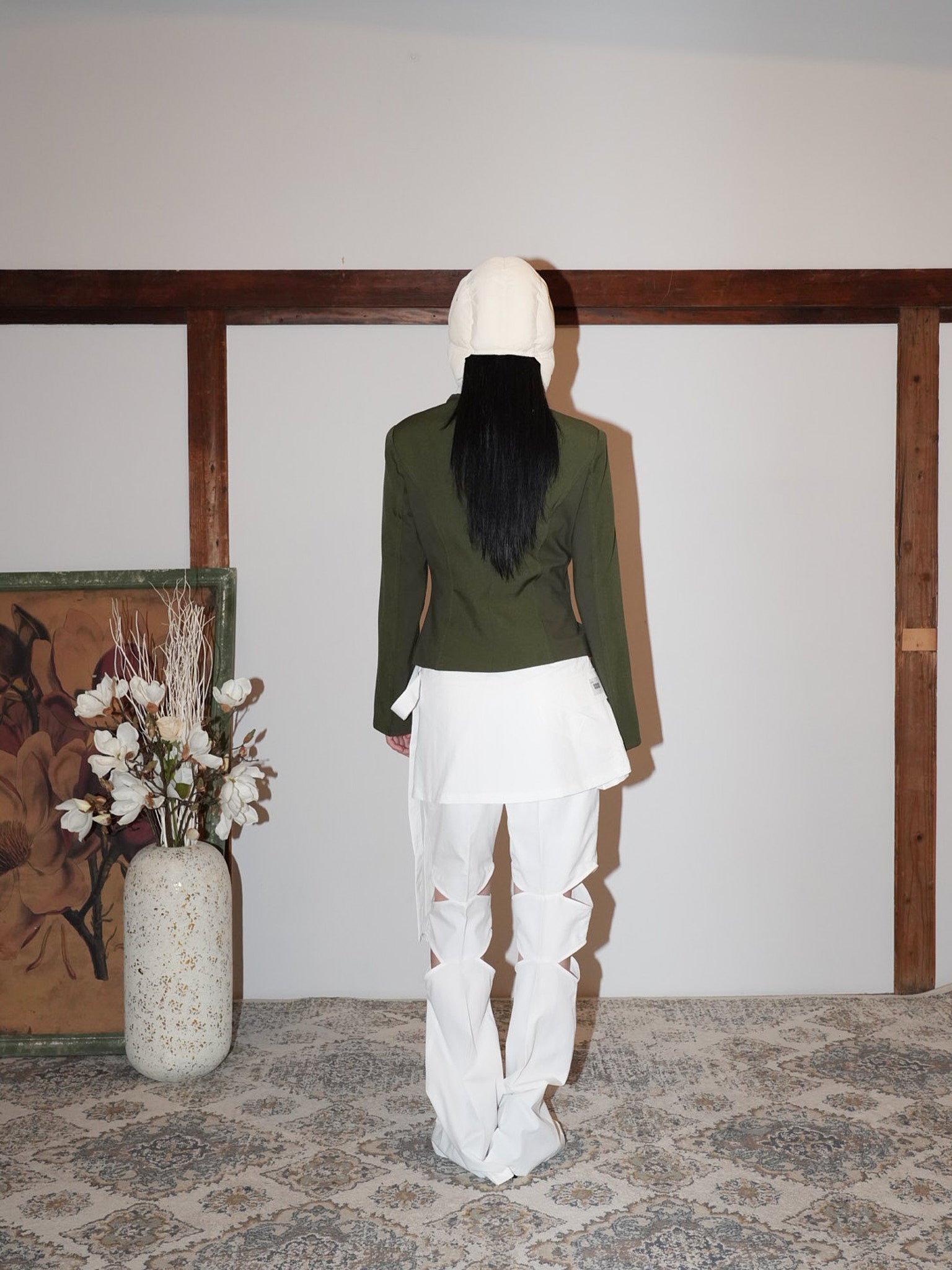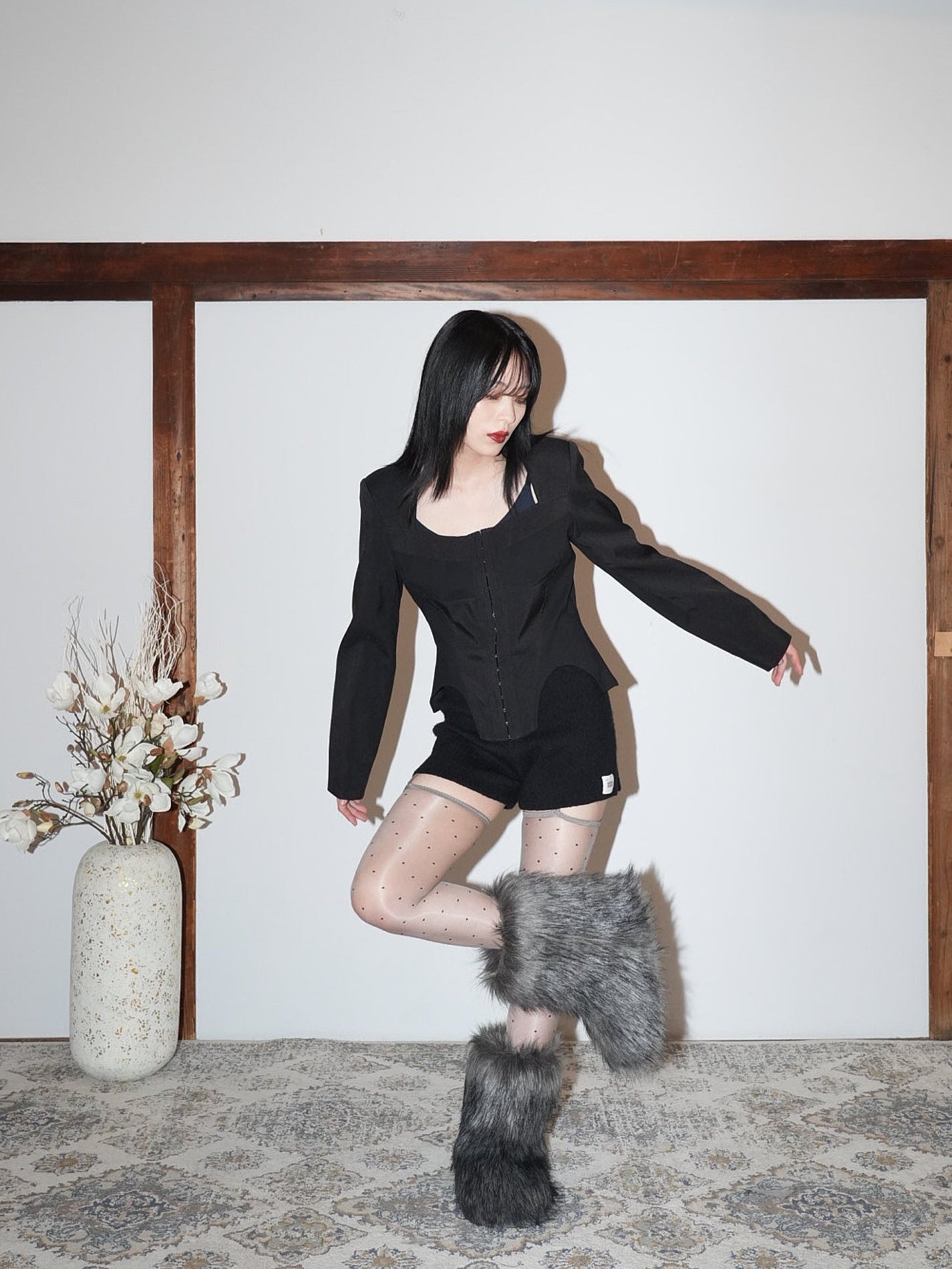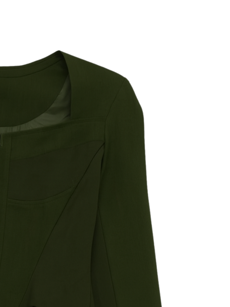 大胆なカッティングと構築的なシルエットが印象的なコルセット風トップス。
