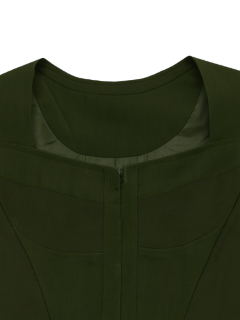 ウエストを引き締めるボーンデザインで女性らしいラインを強調。