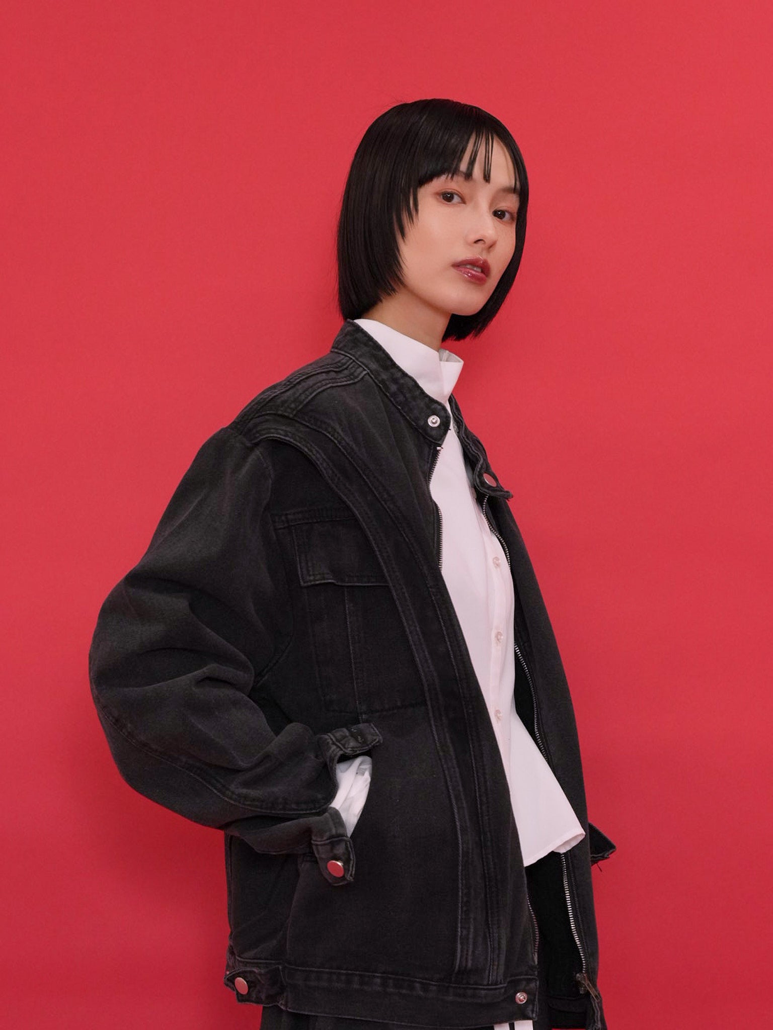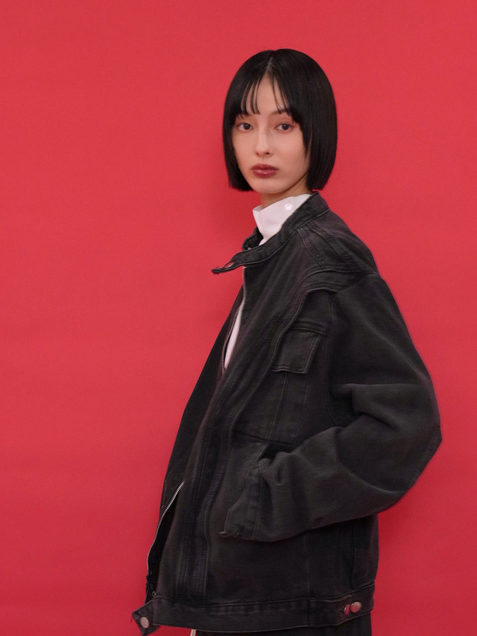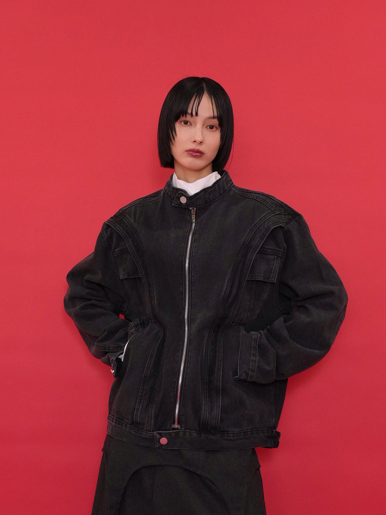 どんなスタイルにもそっと馴染む、使い勝手抜群のブラックアウターです。