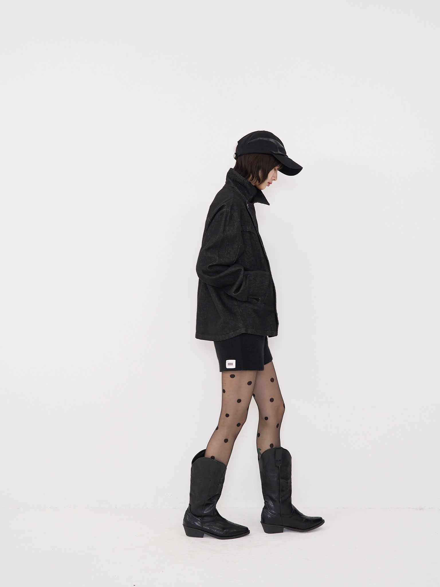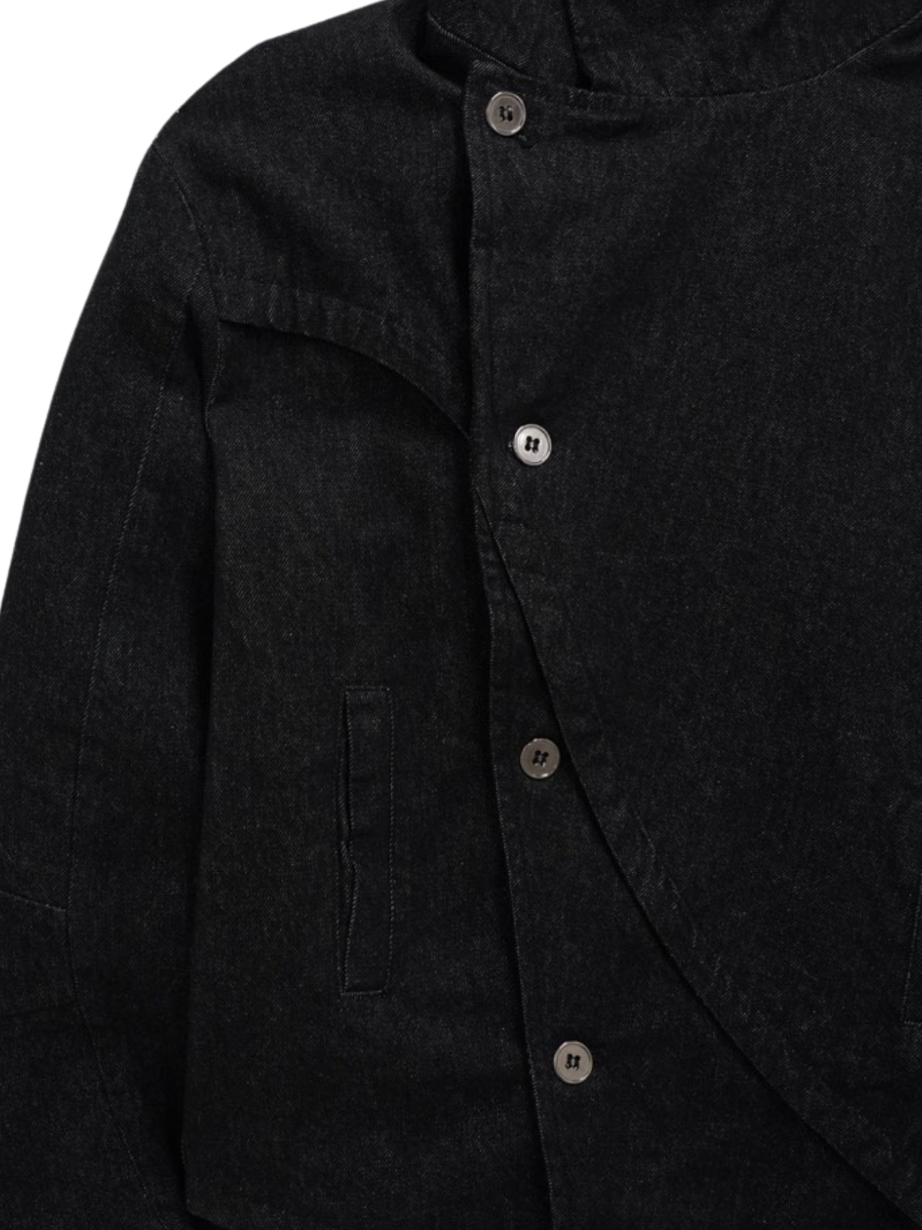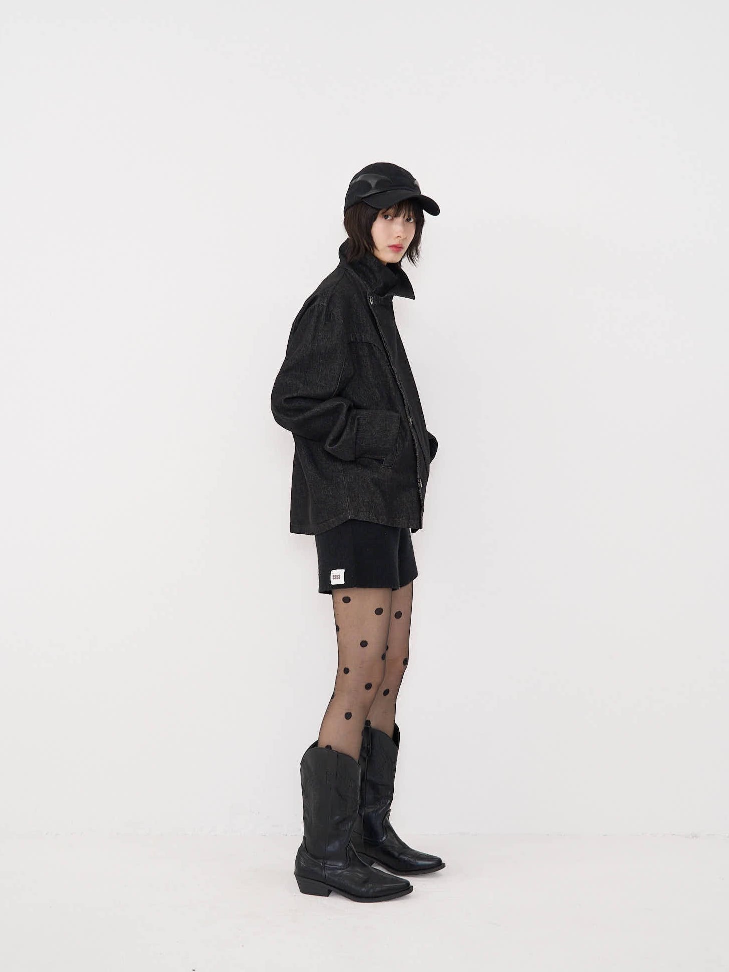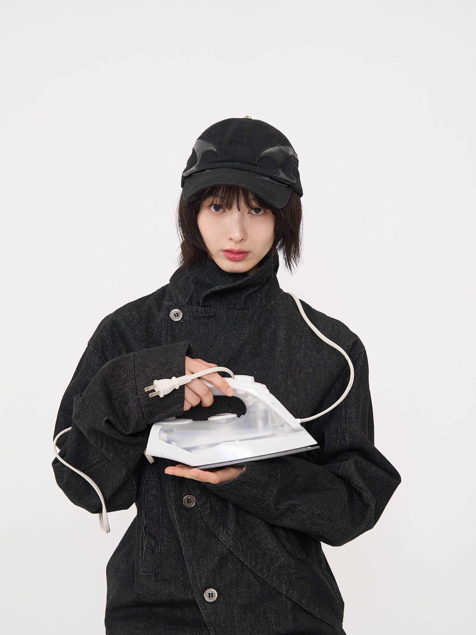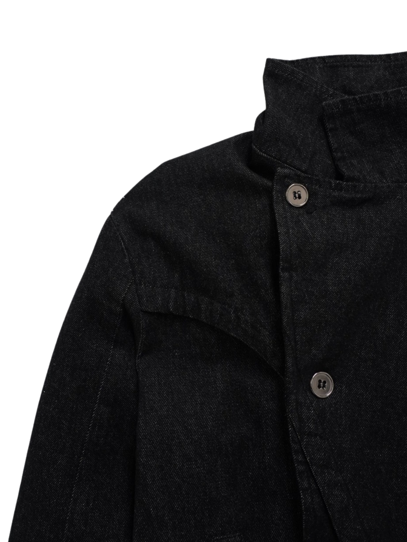 斜めに配されたボタンデザインが印象的なスタンドカラーアウター。コンパクトな丈感と程よく構築されたシルエットで、全体をシャープに引き締める。無駄を削ぎ落としたデザインながら、着るだけで強さと品を纏える一着。