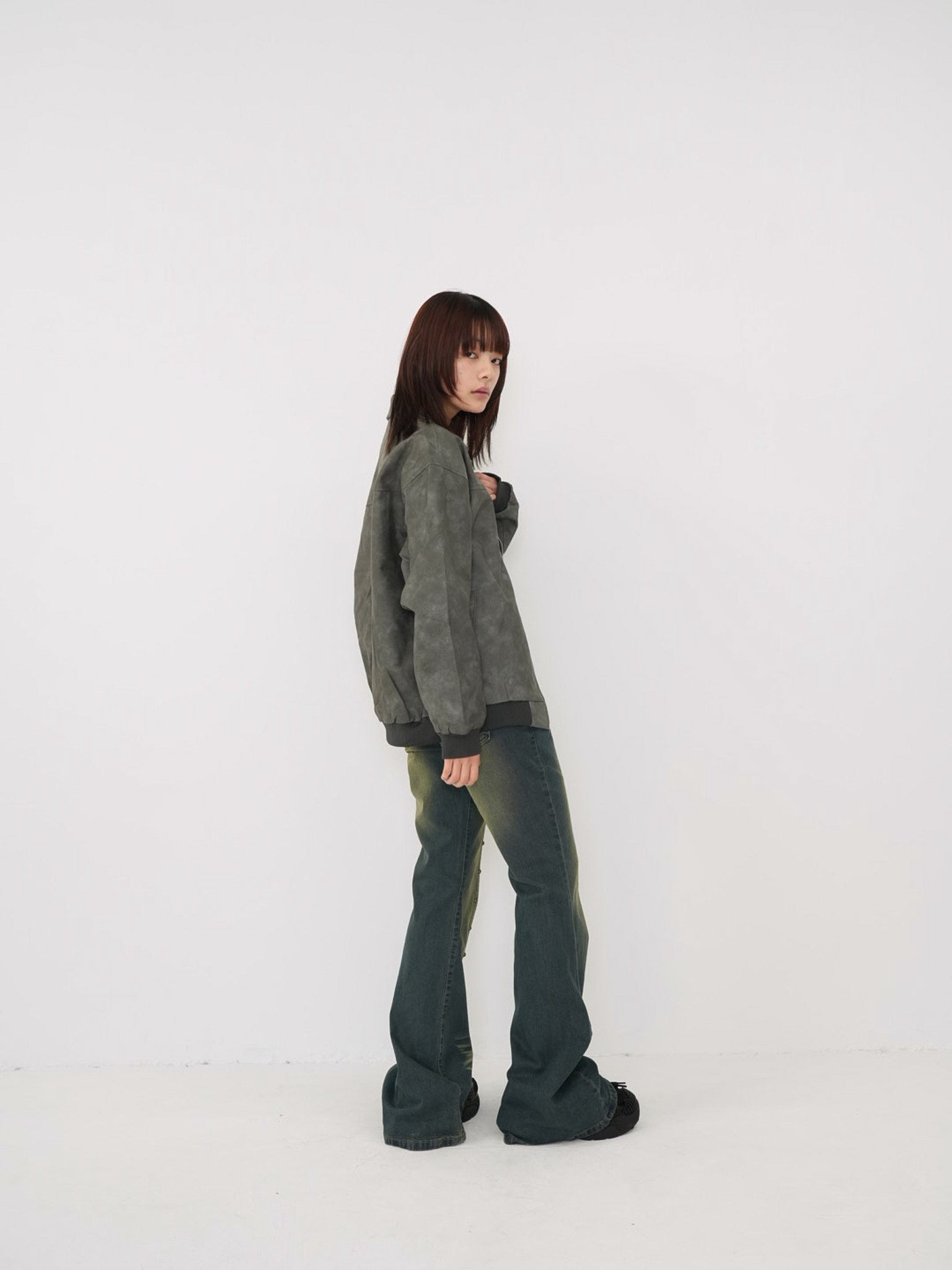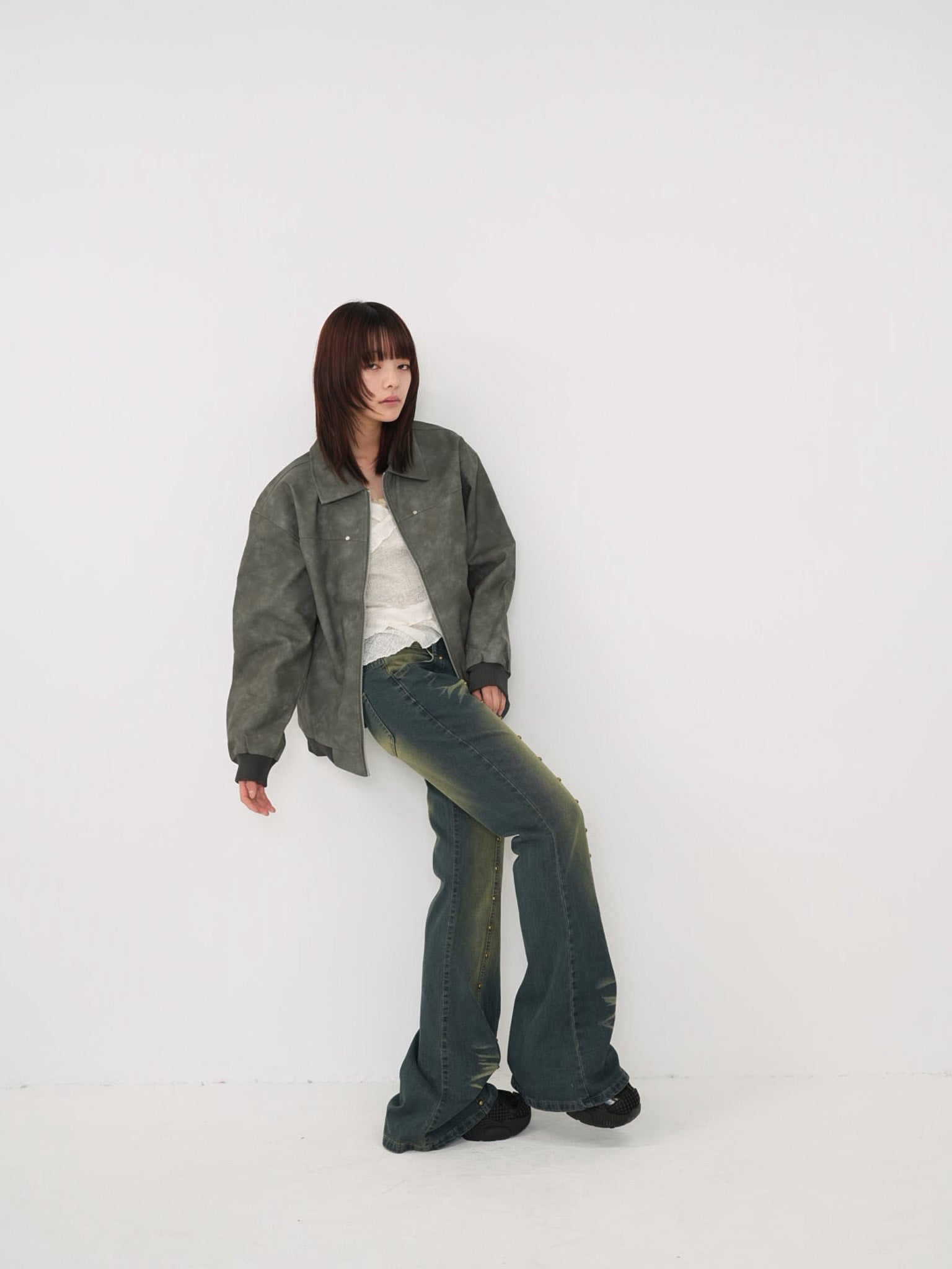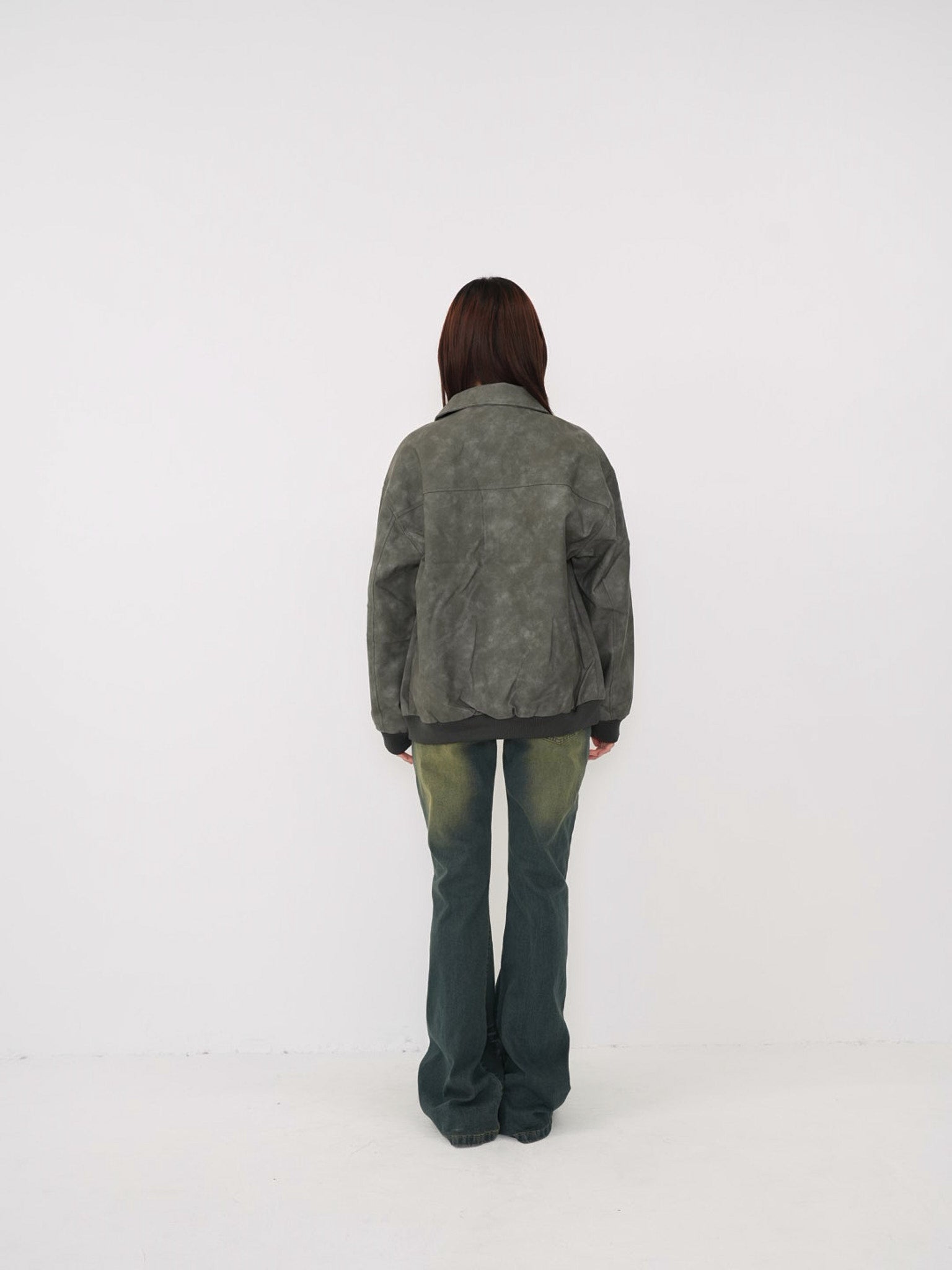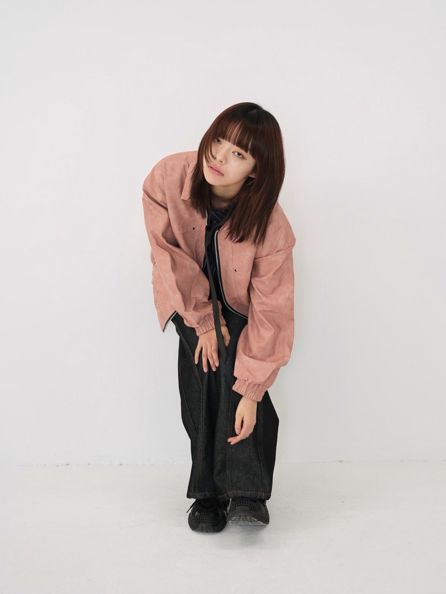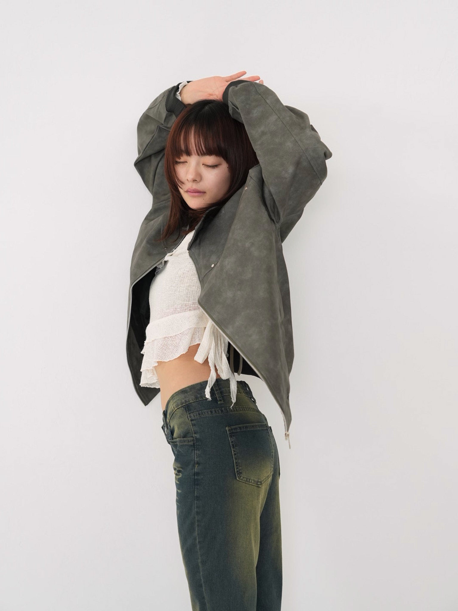 程よい艶感のあるフェイクレザー素材を使用したジップアップアウター。柔らかく軽い着心地で、ハードになりすぎず日常に取り入れやすい一着。丸みのあるシルエットが抜け感を演出し、羽織るだけでスタイリングに奥行きを与えます。