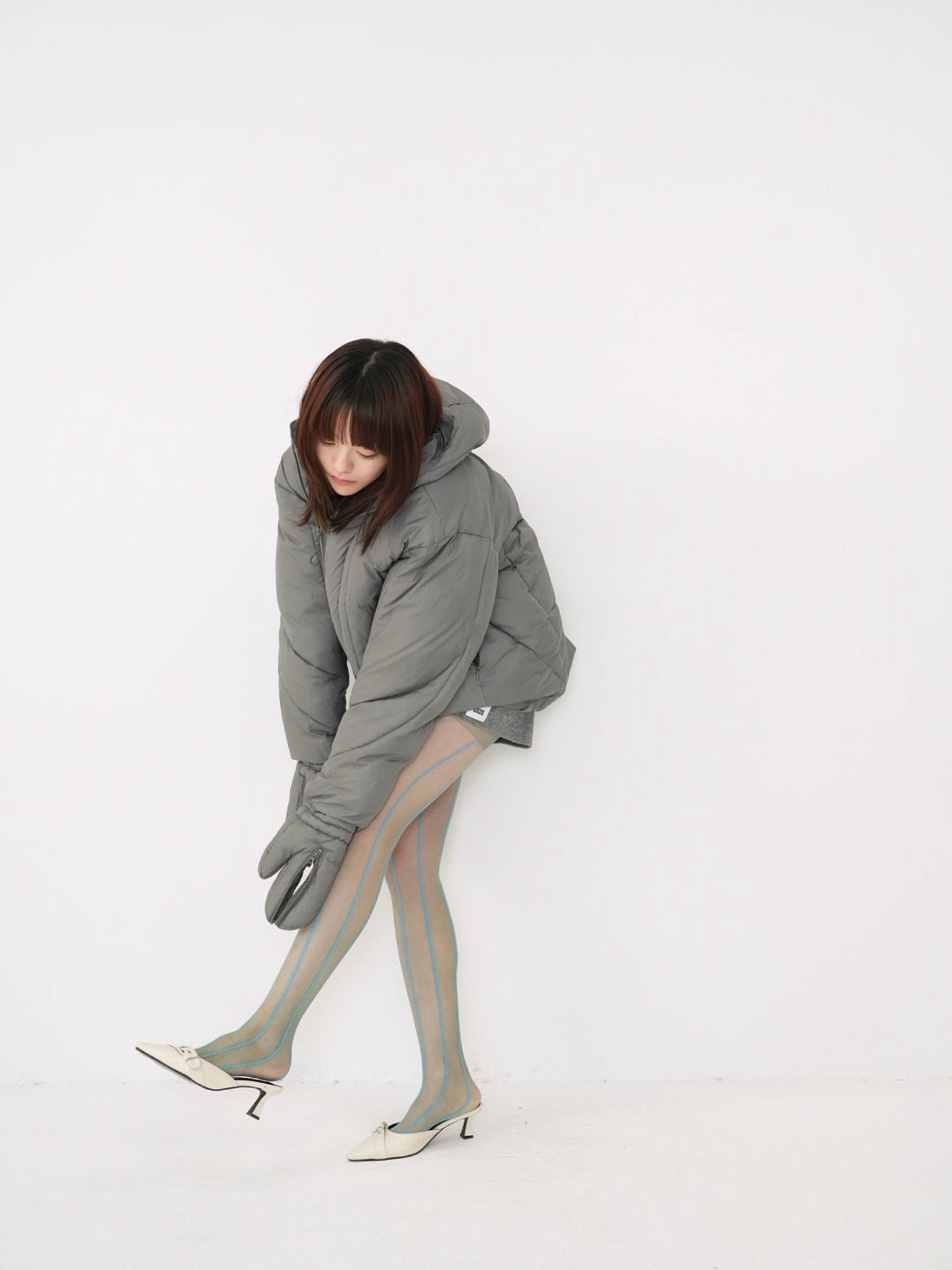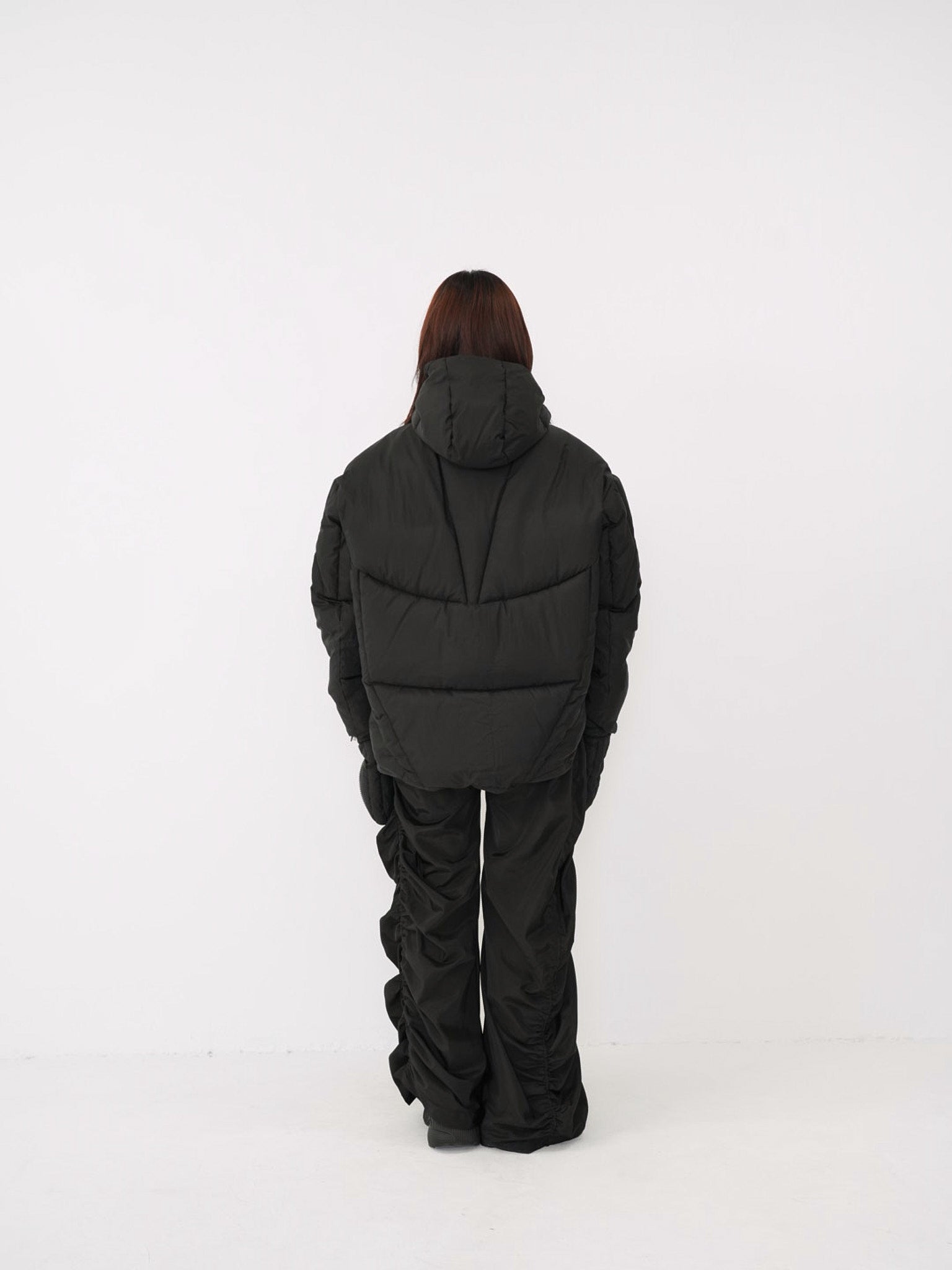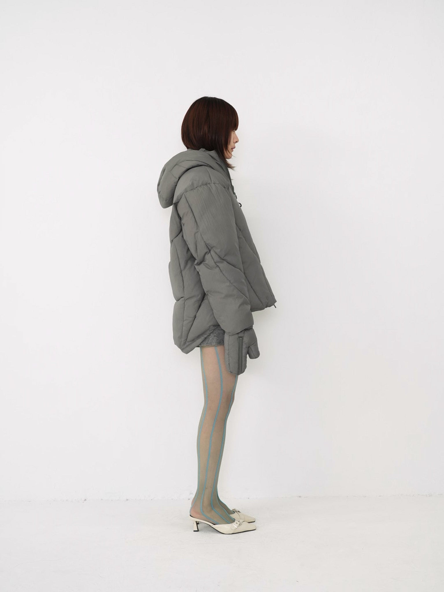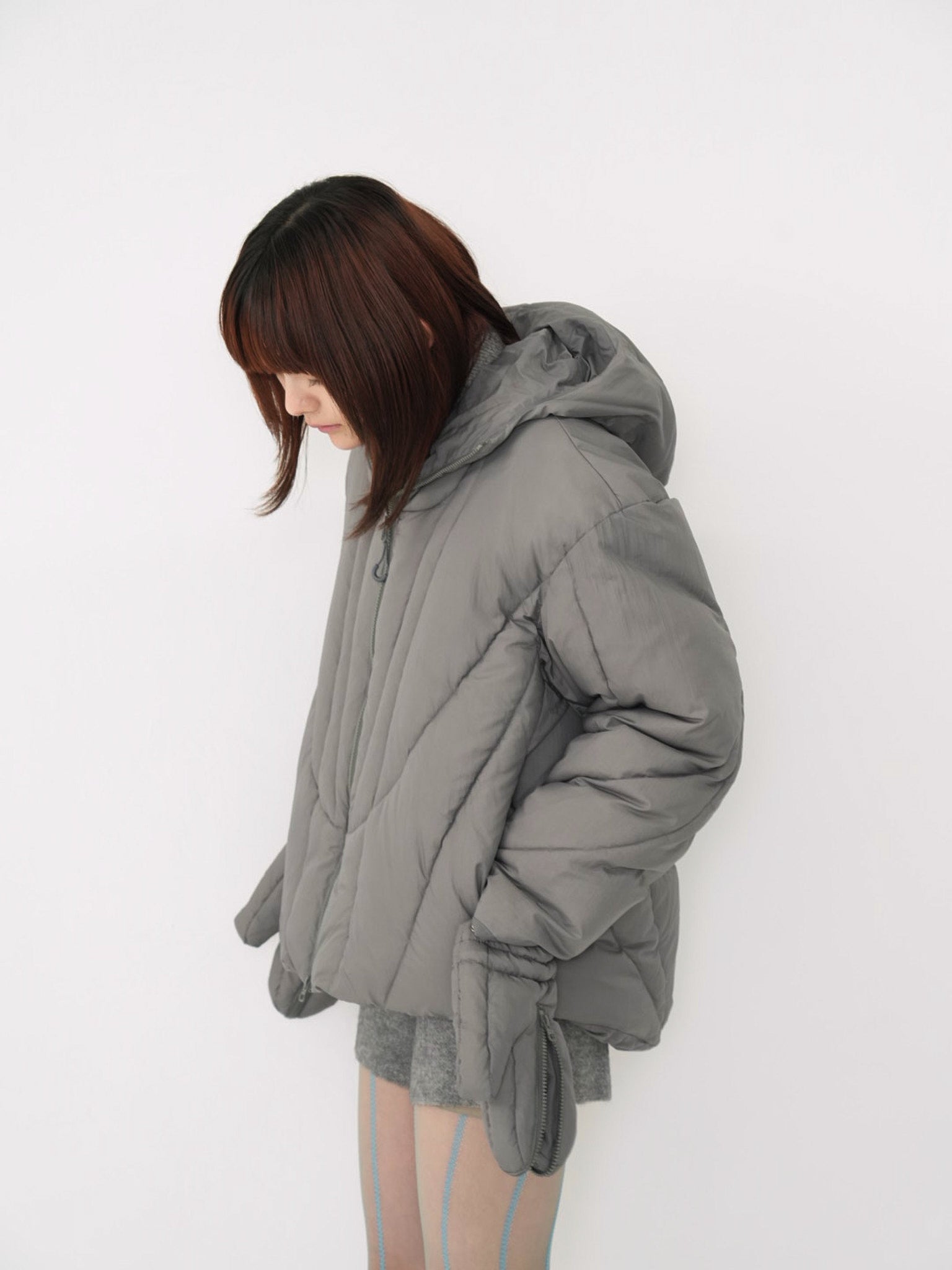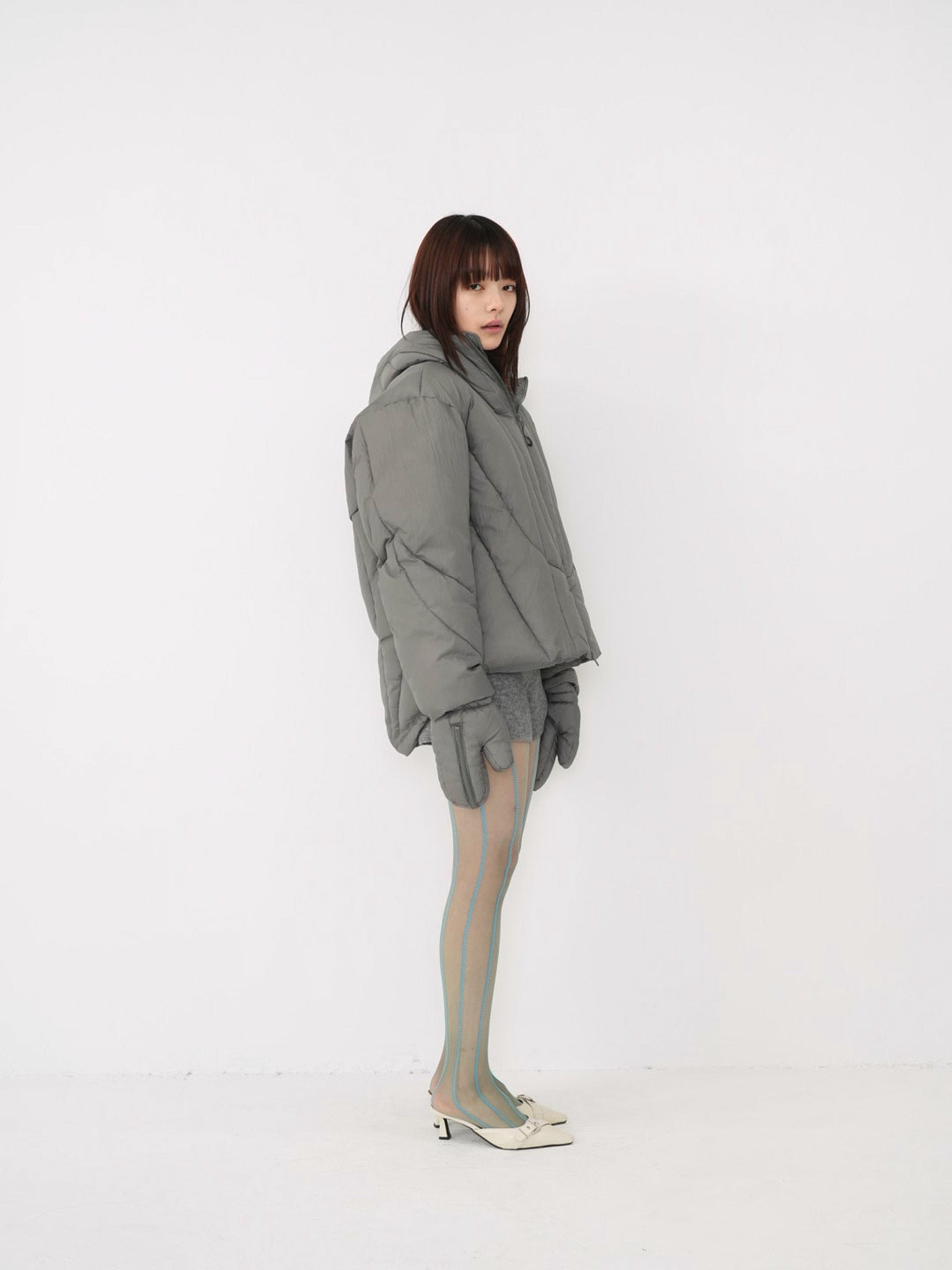 これは服というより、ちょっとした装備。フードとグローブが最初から付いていて、「寒いからどうしよう」を考える前にもう完成している。着る人の準備不足さえ受け止めてくれる、やさしくて変なダウン。ユニークな見た目は、目立つためじゃなく、迷わないため。防寒も、スタイルも、気分も全部まとめて包み込む。今日は外に出るだけ。それ以上のことは、この服がやってくれる。