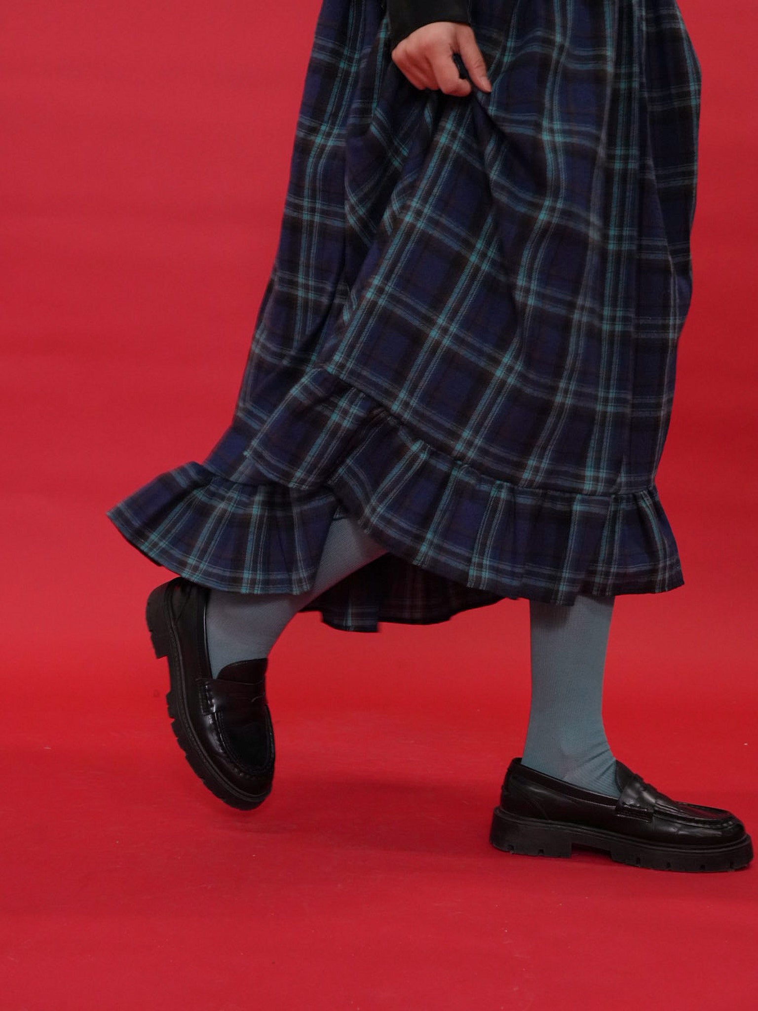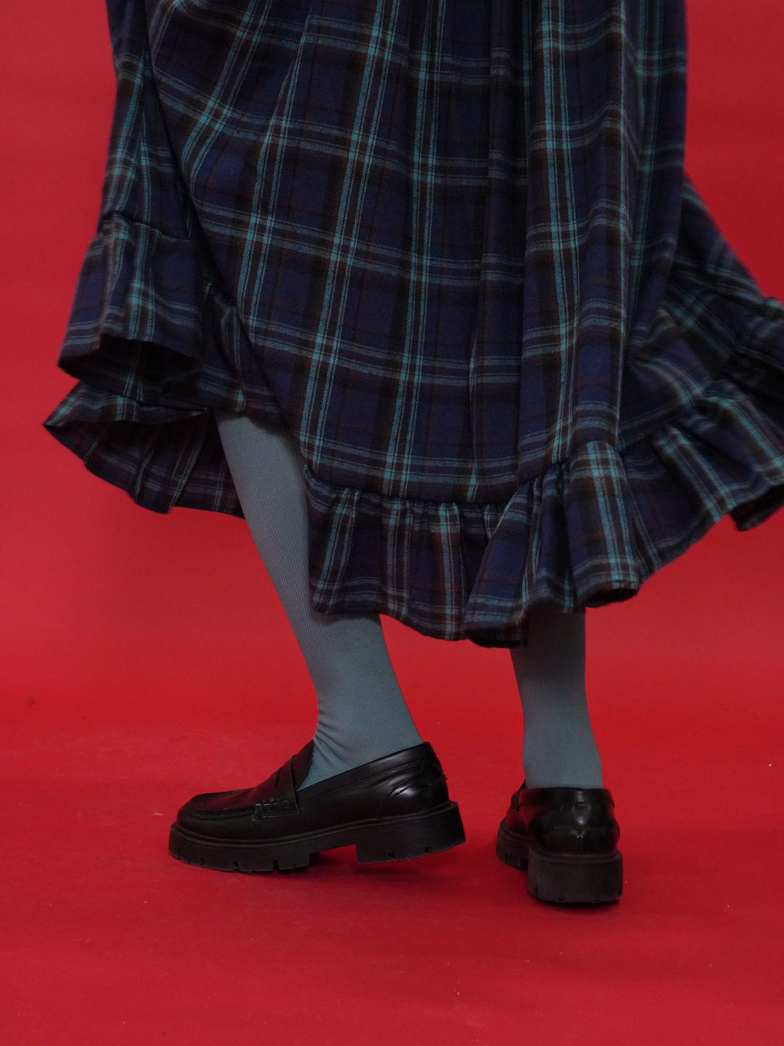 巻きつけるラップスカートを重ねてボリュームを出す2WAYデザイン。