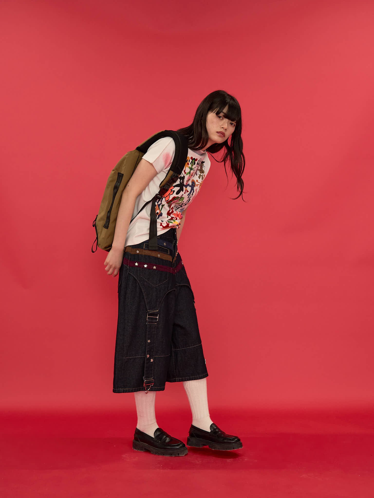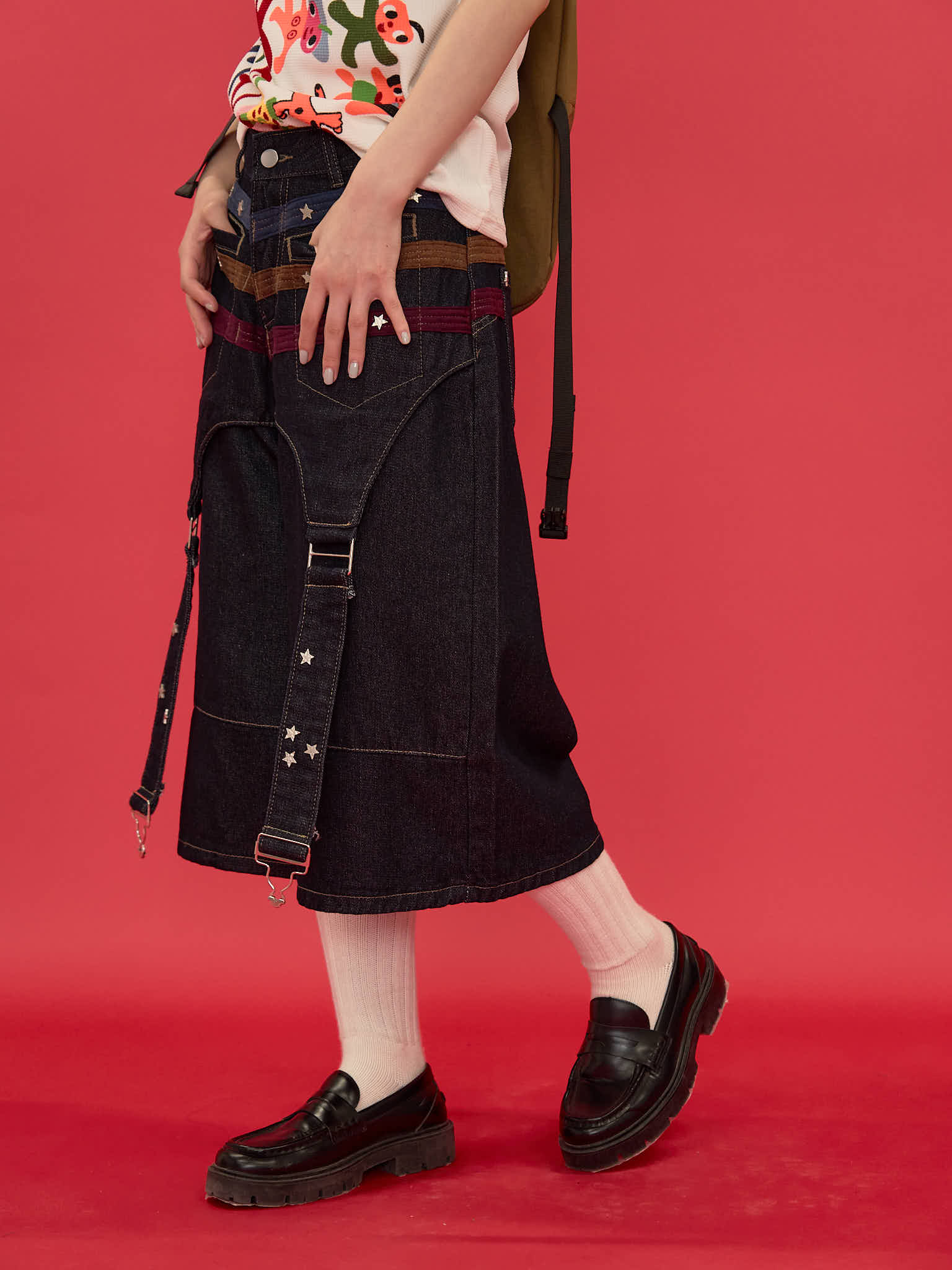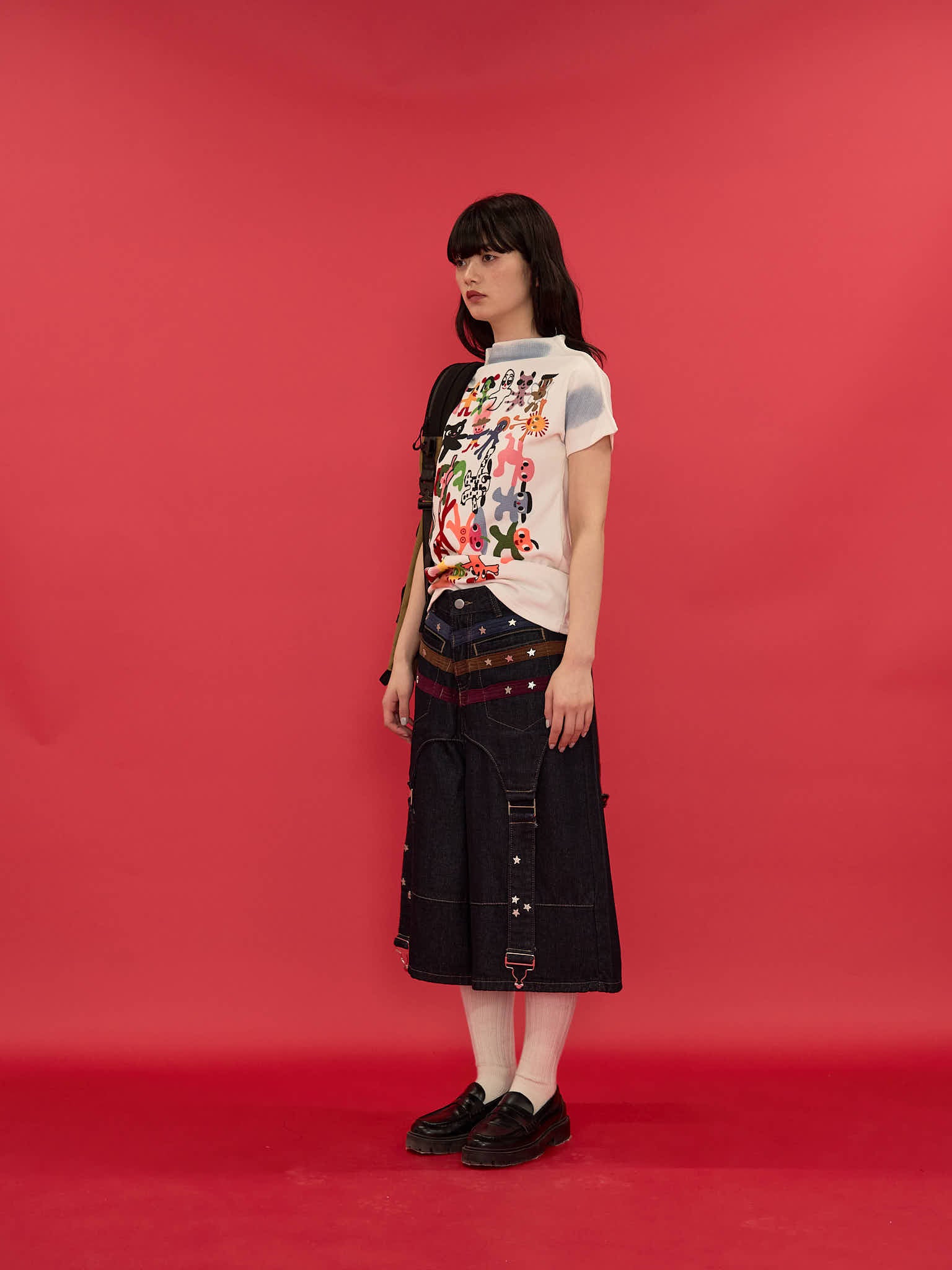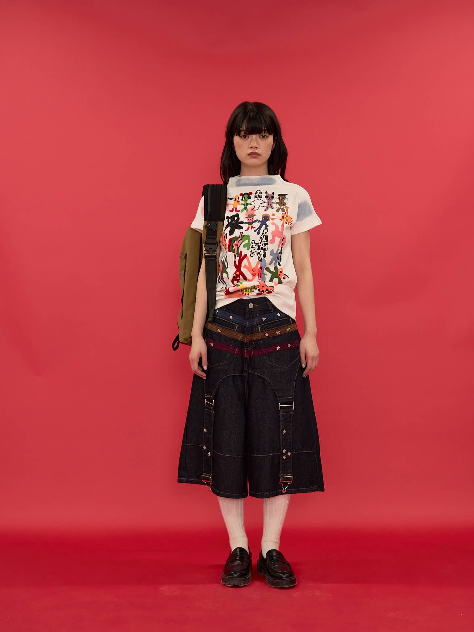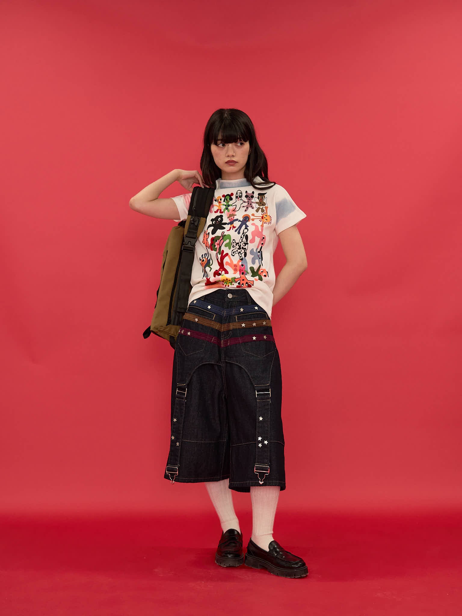 ワイドシルエットが印象的なハーフパンツ。膝下まで届く長めの丈感と、立体感のある切替デザインで存在感を演出。ウエストまわりのディテールがアクセントになり、ラフになりすぎず個性的な印象に。しっかりとした生地感で、シンプルなトップスに合わせるだけでもコーディネートが決まる一本。