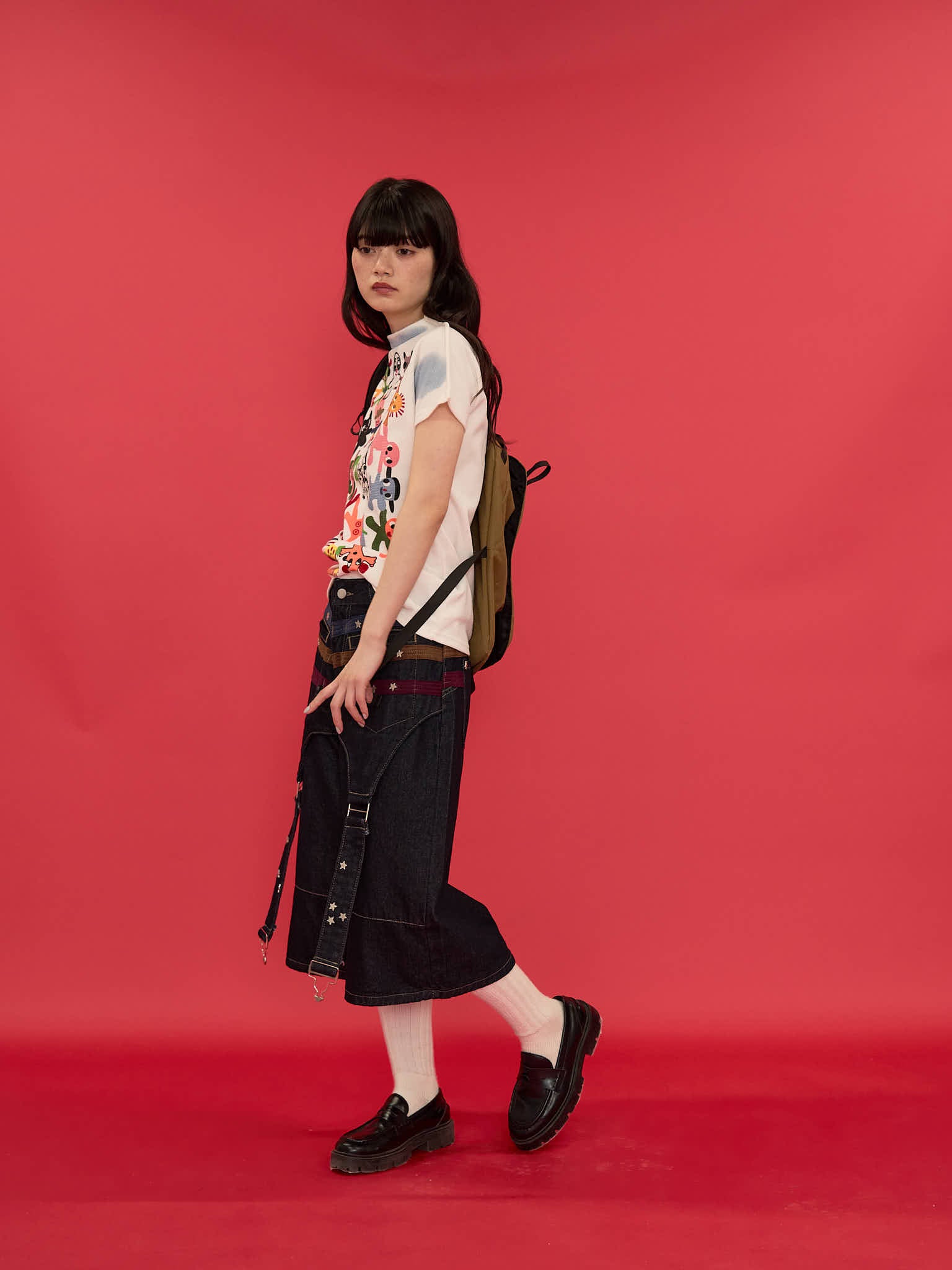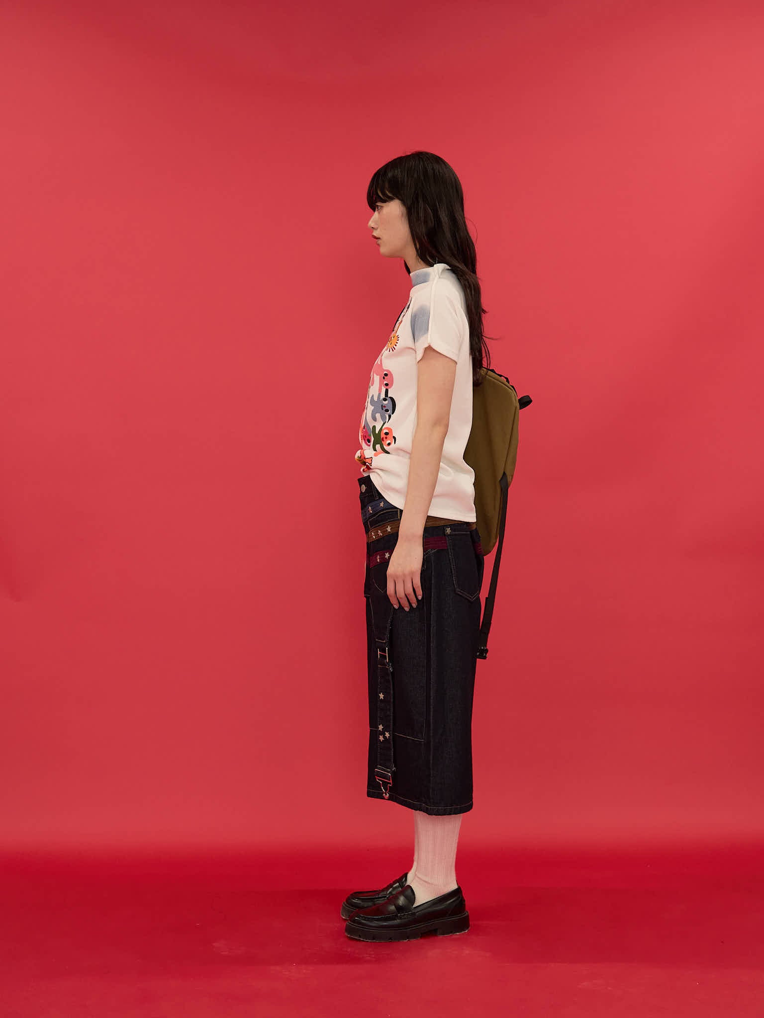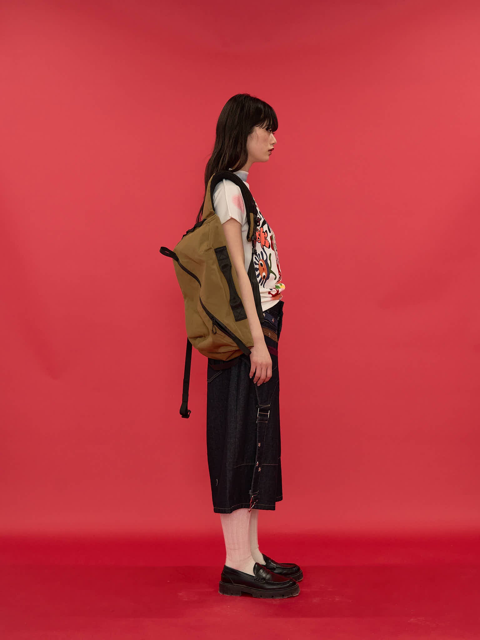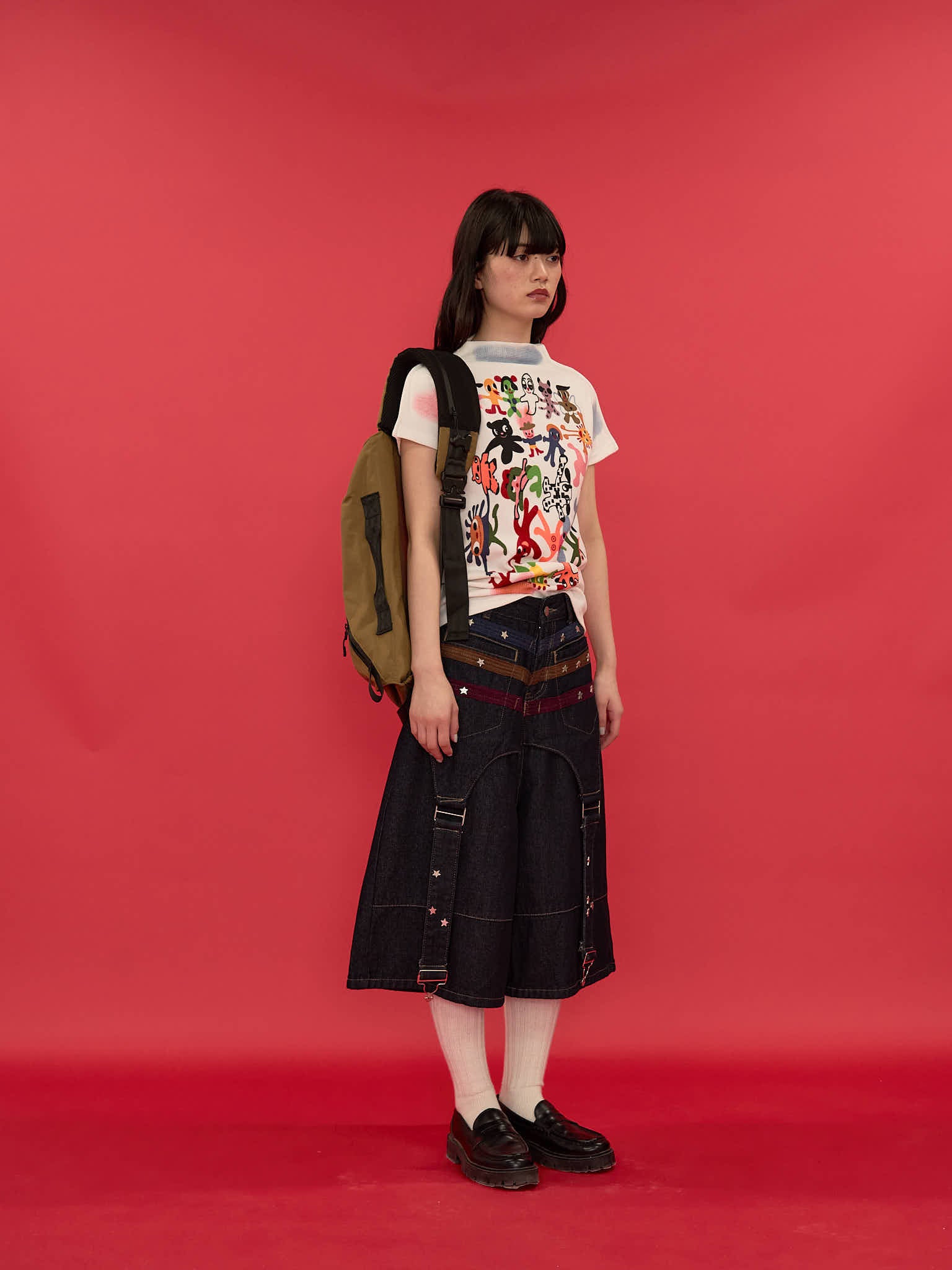 ワイドシルエットが印象的なハーフパンツ。膝下まで届く長めの丈感と、立体感のある切替デザインで存在感を演出。ウエストまわりのディテールがアクセントになり、ラフになりすぎず個性的な印象に。しっかりとした生地感で、シンプルなトップスに合わせるだけでもコーディネートが決まる一本。