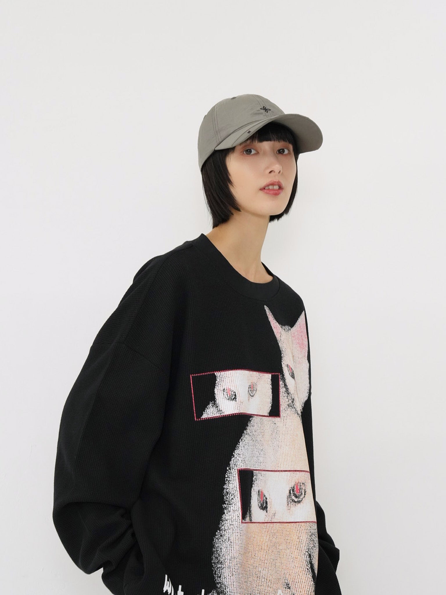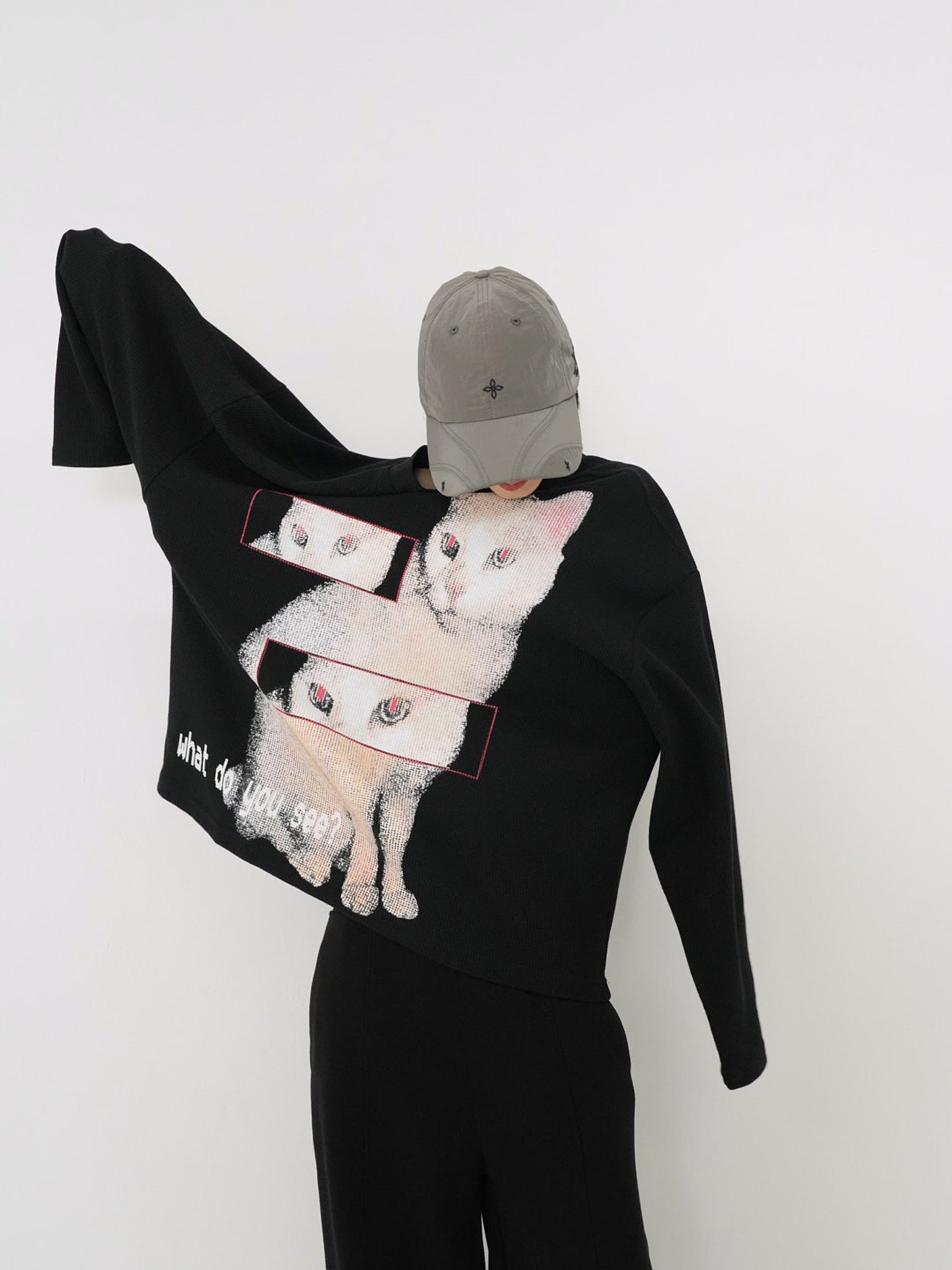 猫好きはもちろん、アクセントが欲しい日にも活躍する存在感あるロンTです。