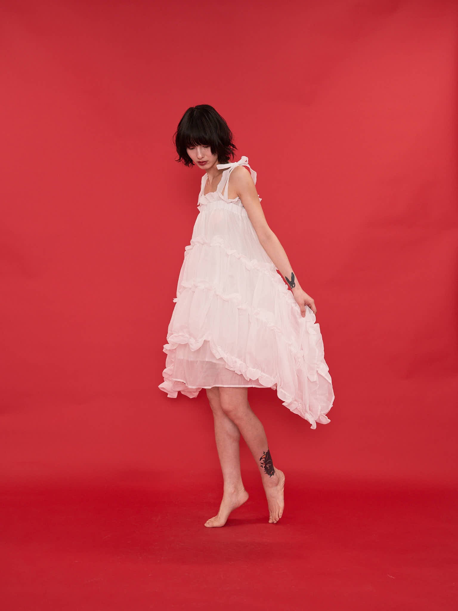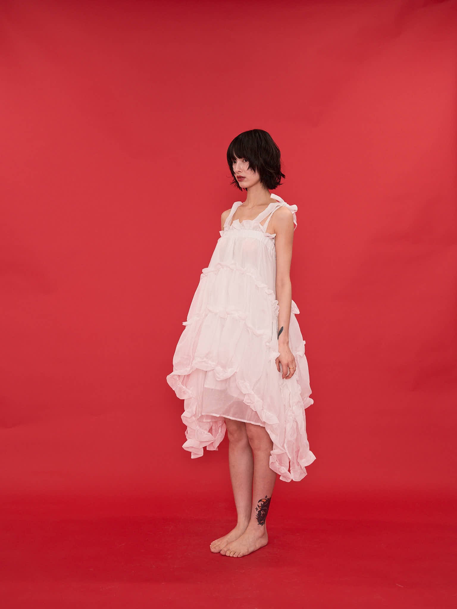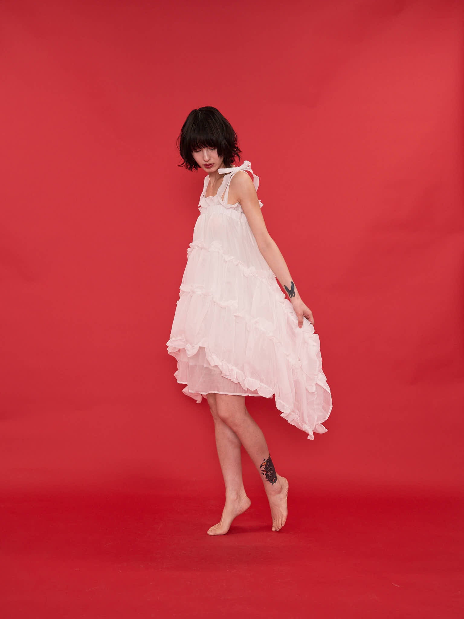 華やかな存在感を放つラウンドフリルキャミワンピース。